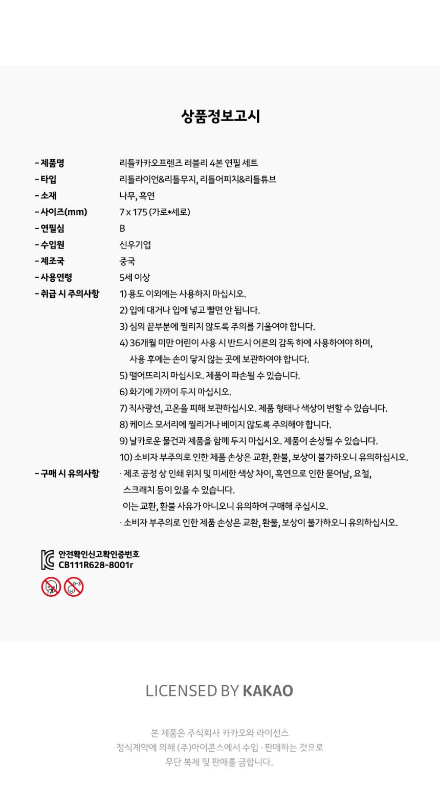 리틀카카오프렌즈 B심 러블리 4본 연필세트 / 설래임 / 디비디비 / 구매하기 / 특가할인