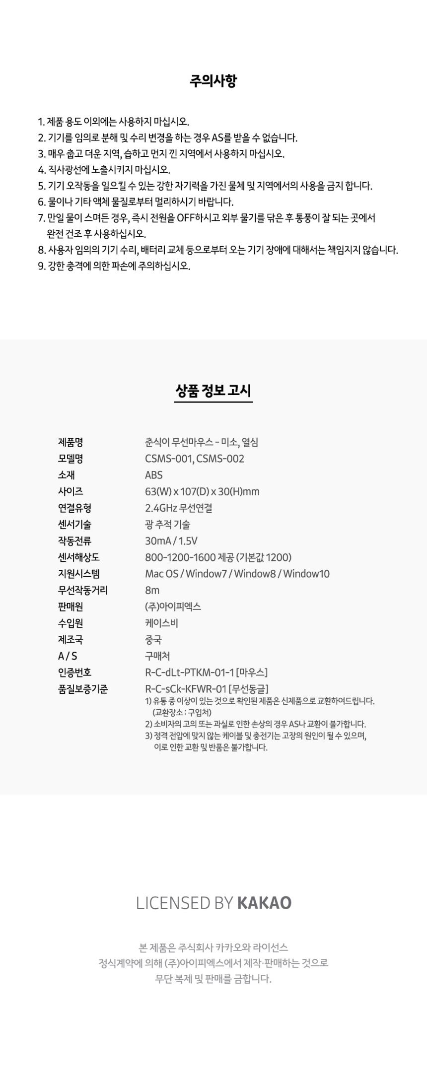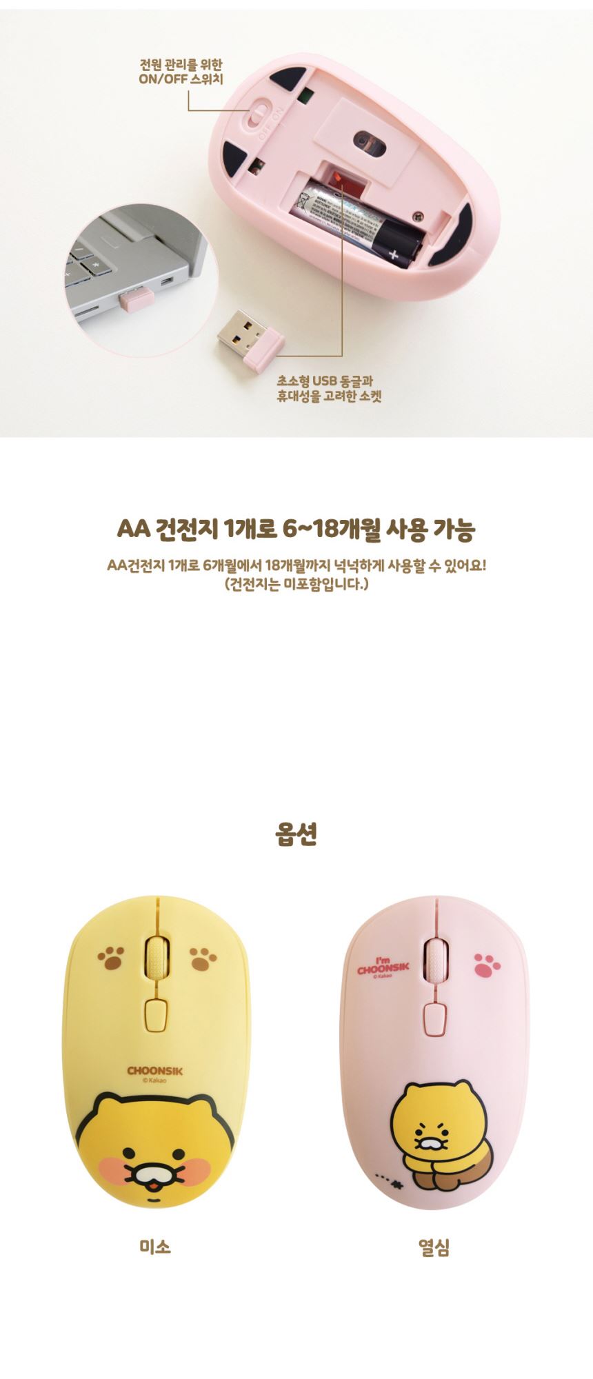 카카오프렌즈 춘식이 무선 마우스 / 설래임 / 디비디비 / 구매하기 / 특가할인