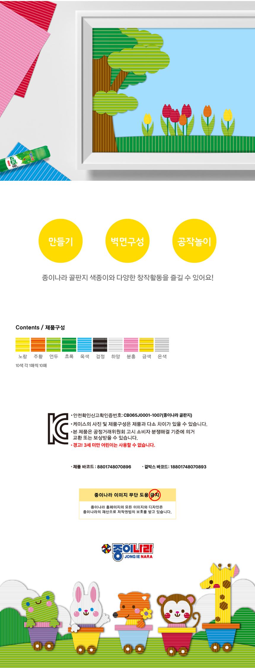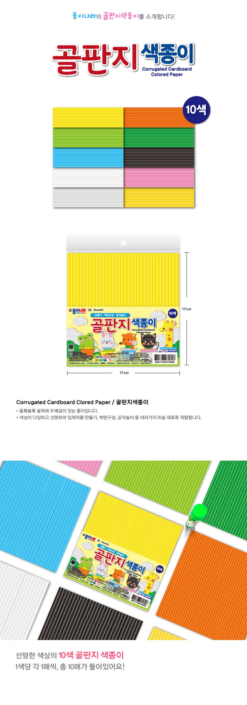 • 종이나라 공작놀이 골판지 색종이 10색 10매 1갑(10팩)