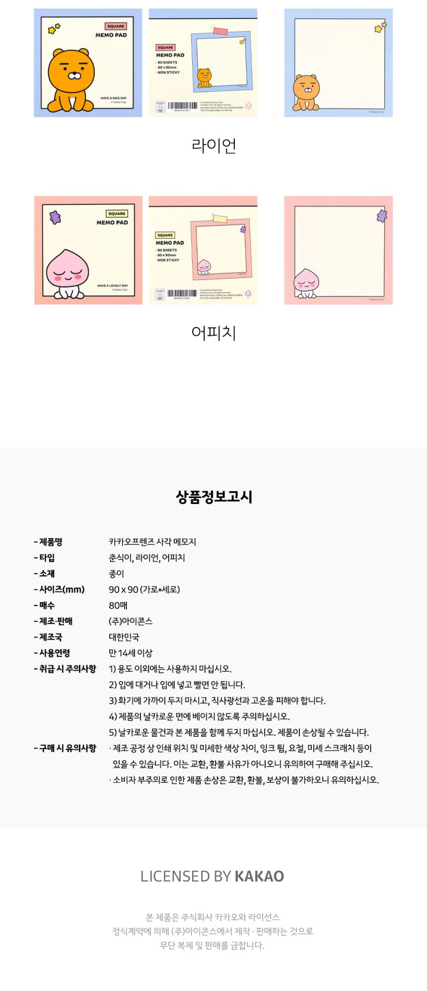 카카오프렌즈 떡메모지 사각 메모지 / 설래임 / 디비디비 / 구매하기 / 특가할인