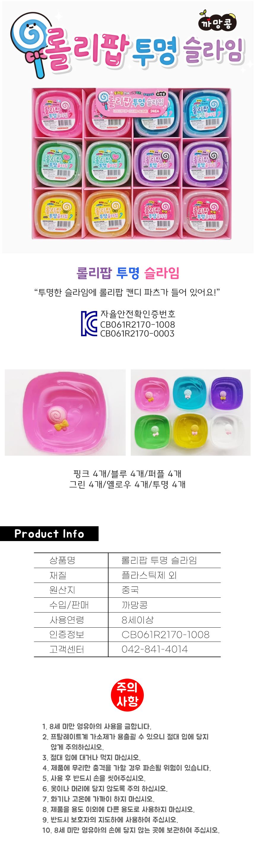 • 까망콩 액괴 젤리몬스터 롤리팝 투명 슬라임 1갑(24개)