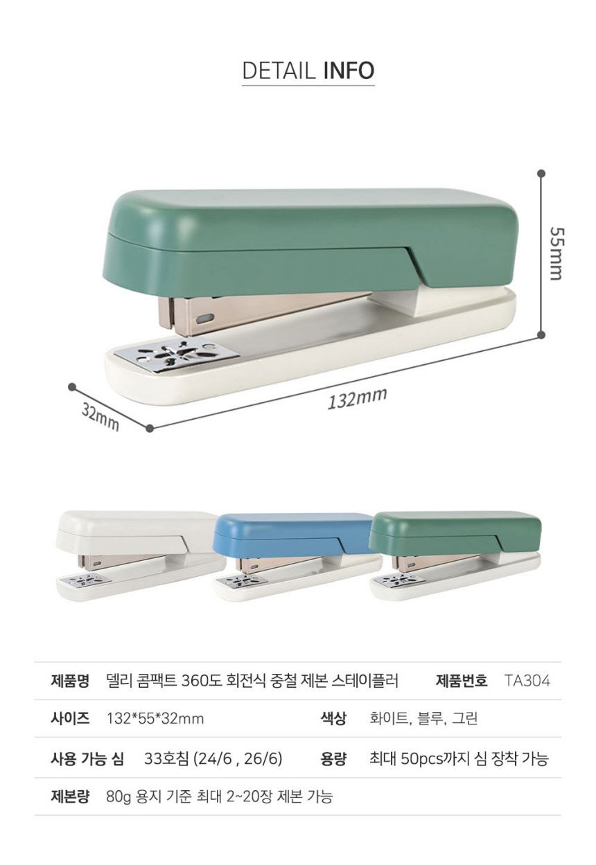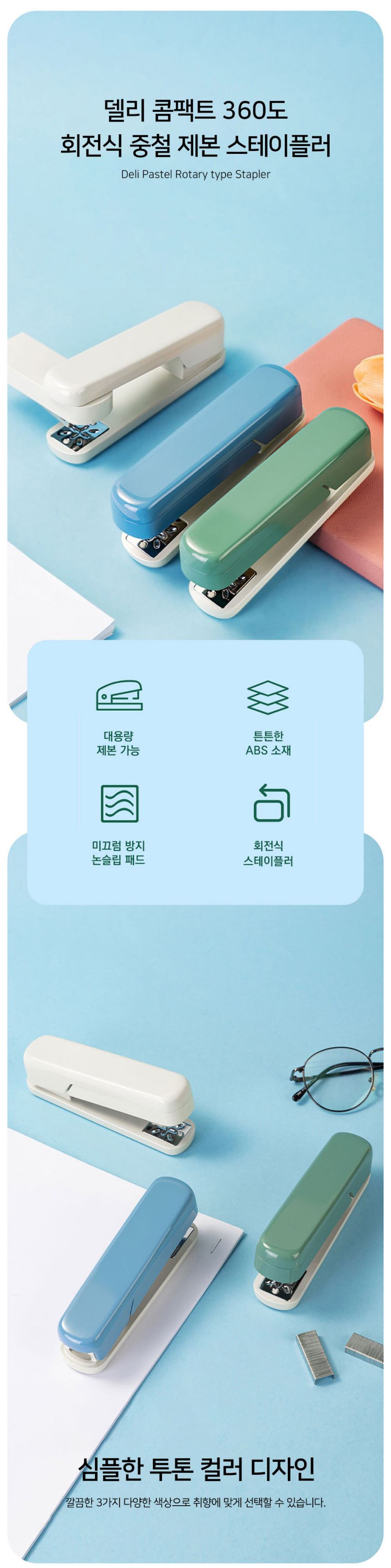 • 델리 파스텔 콤팩트 360도 회전식 중철 제본 스테이플러