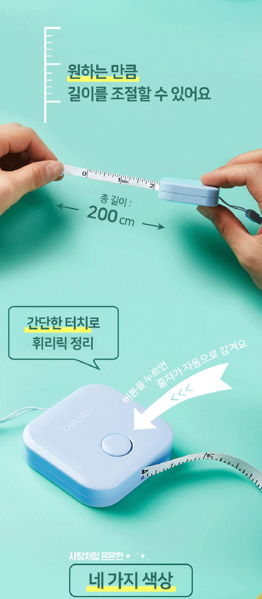 • 델리 휴대용 피팅 다이어트 미니줄자 2m