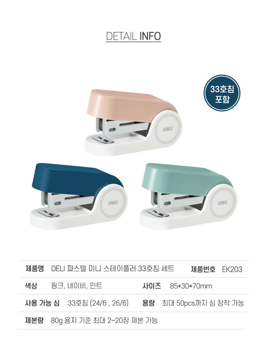 델리 휴대용 33호침 파스텔 미니 스테이플러