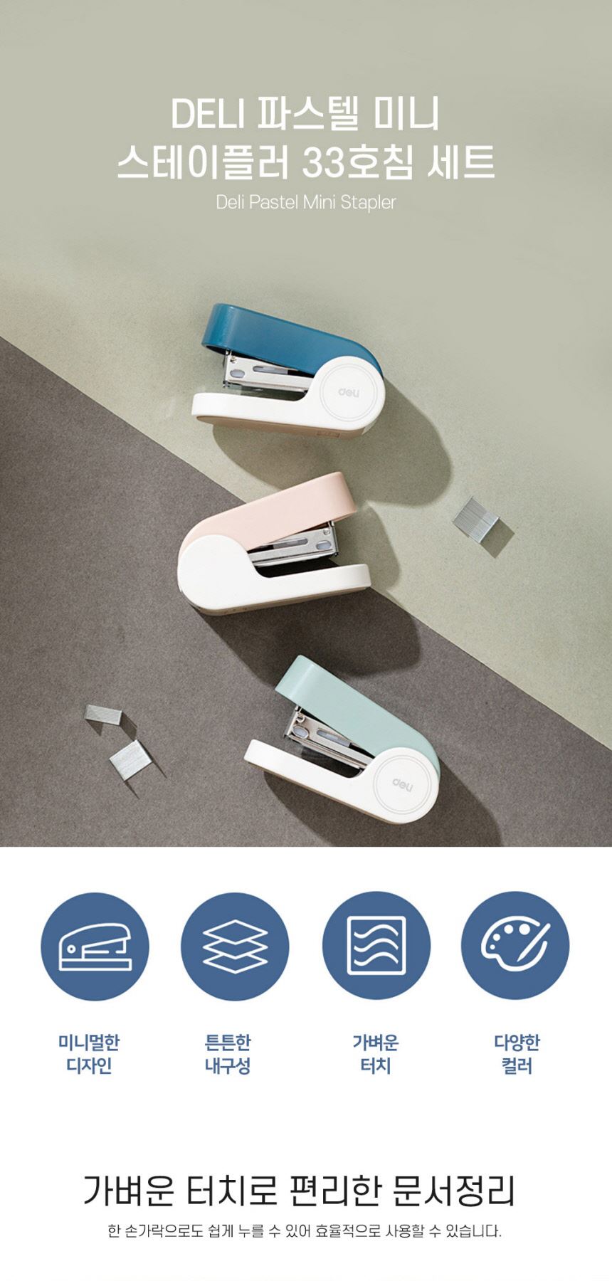 델리 휴대용 33호침 파스텔 미니 스테이플러 / 설래임 / 디비디비 / 구매하기 / 특가할인