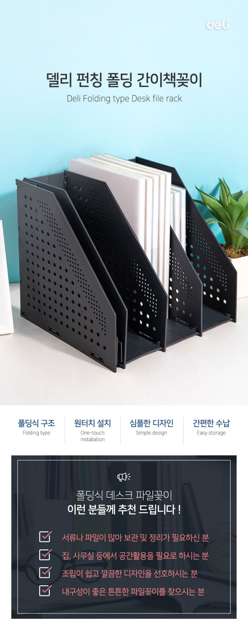 • 델리 접이식 펀칭 폴딩 간이책꽂이 4단