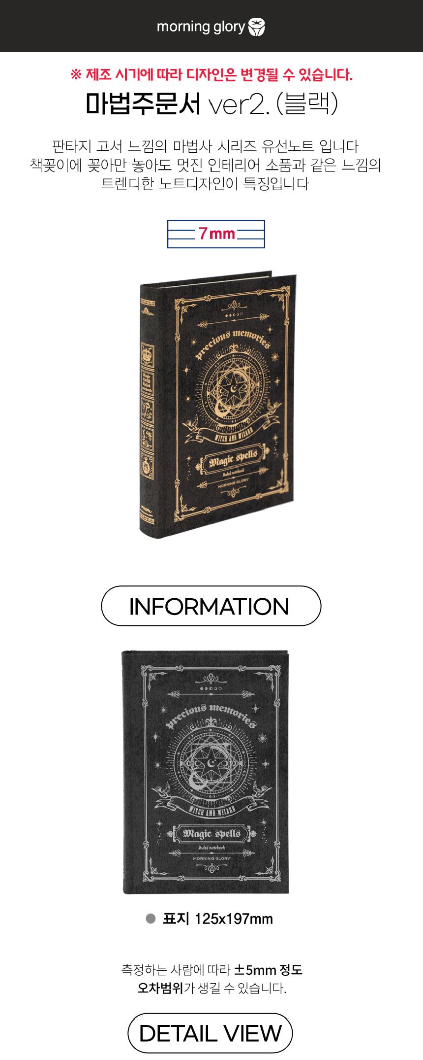 모닝글로리 7mm 양장노트 마법 주문서 블랙 / 설래임 / 디비디비 / 구매하기 / 특가할인