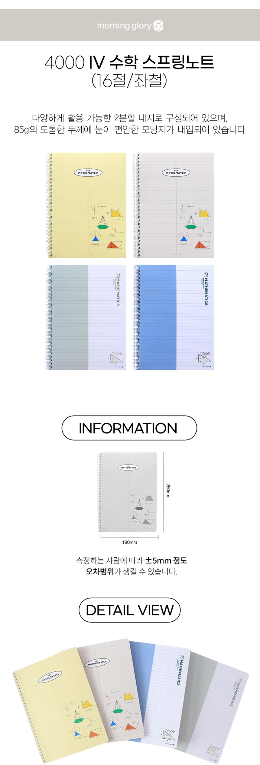 모닝글로리 2분할 아이보리 수학 스프링노트 16절 좌철 랜덤색상 / 설래임 / 디비디비 / 구매하기 / 특가할인