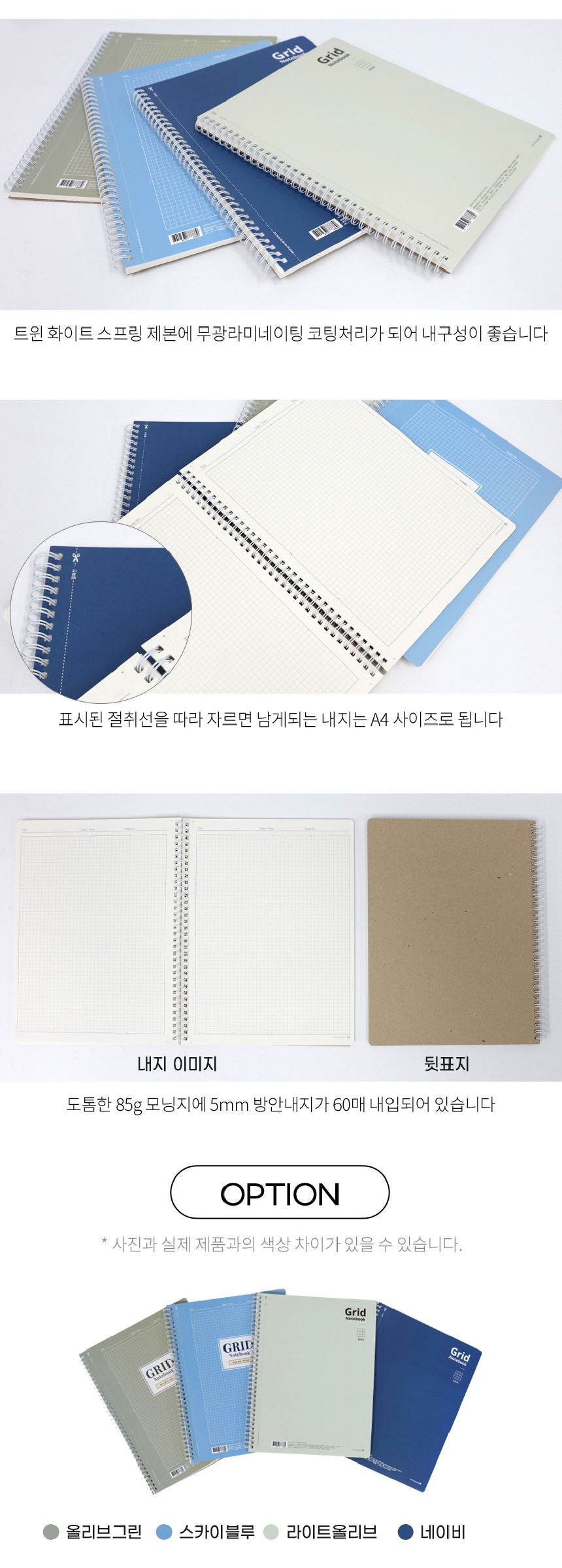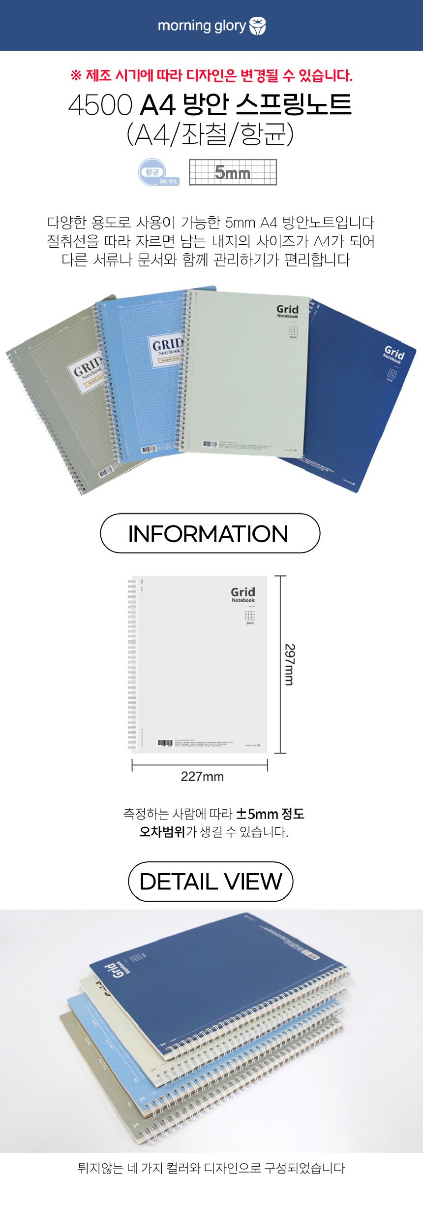 모닝글로리 절취 그리드 A4 방안 스프링노트 좌철 랜덤색상