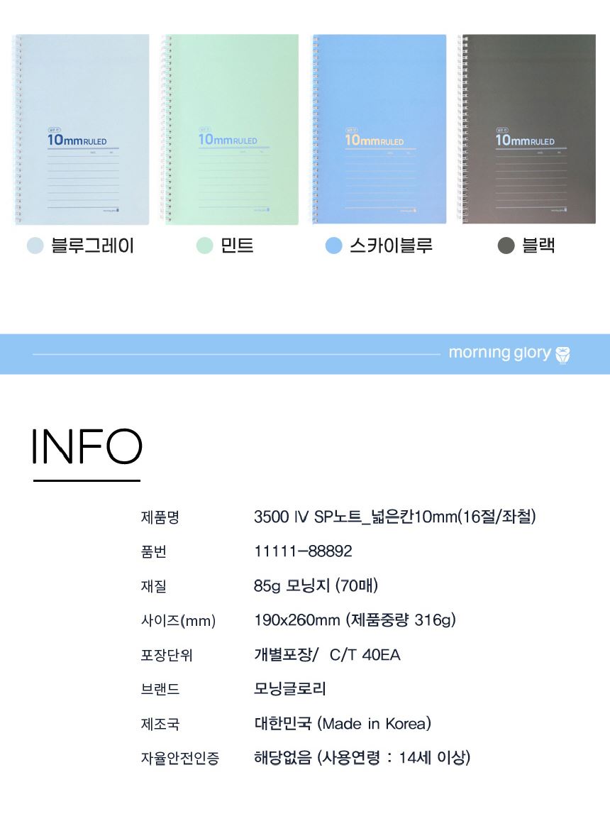 • 모닝글로리 아이보리 스프링노트 넓은칸10mm 16절/좌철