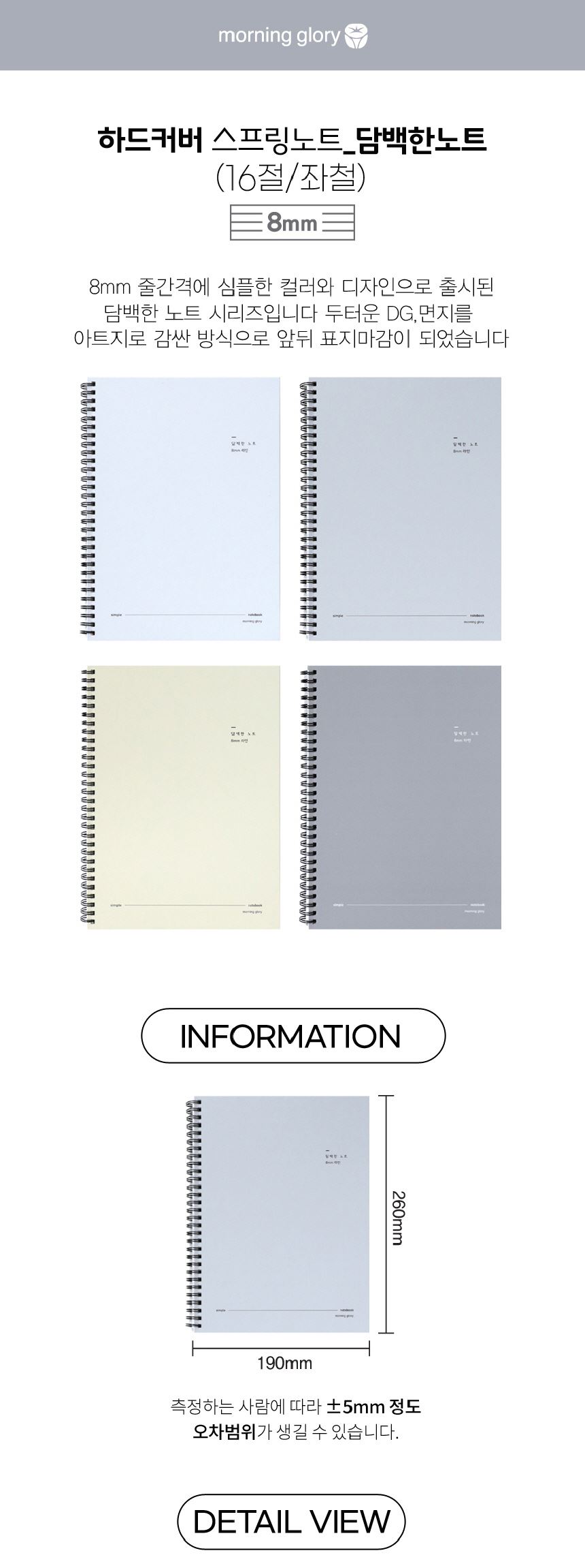 • 모닝글로리 하드커버 스프링노트_담백한노트 16절 좌철 랜덤색상