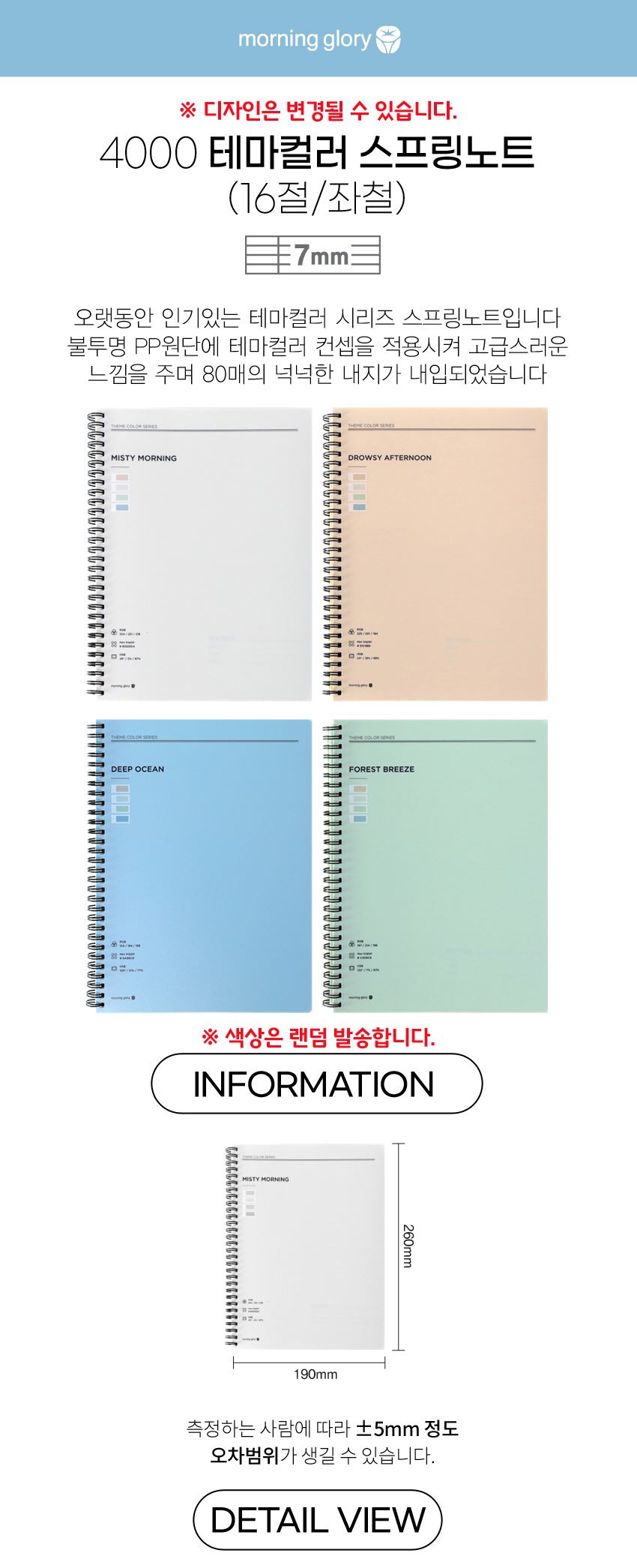 모닝글로리 7mm 4000 테마컬러 스프링노트 16절/좌철