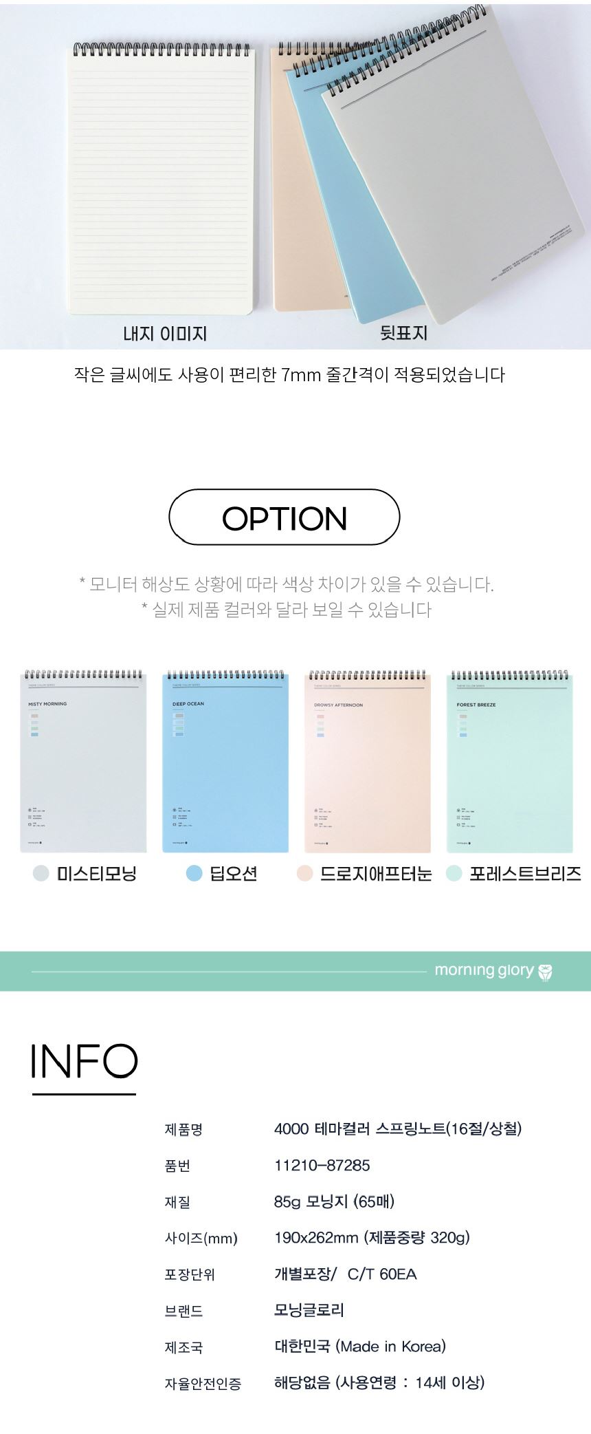 모닝글로리 7mm 4000 테마컬러 스프링노트 16절/상철