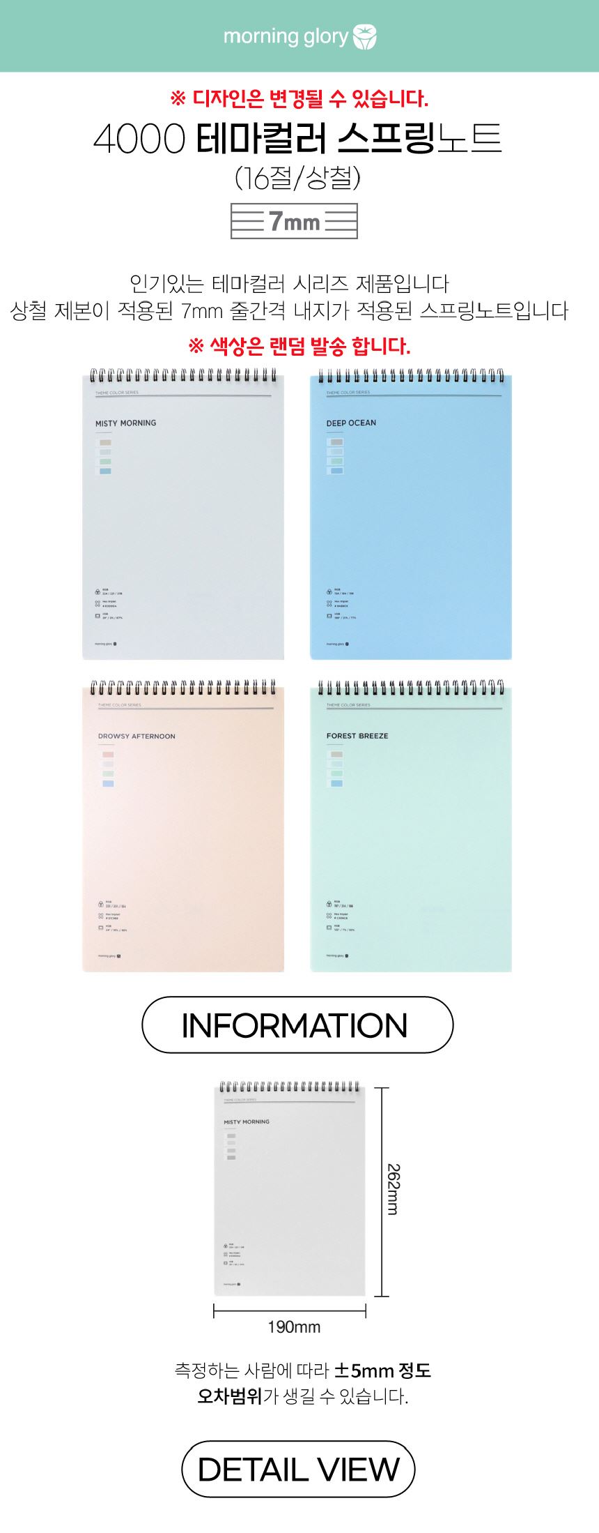 • 모닝글로리 7mm 4000 테마컬러 스프링노트 16절/상철