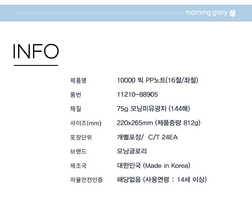 모닝글로리 8mm 인덱스 10000 빅 PP 스프링 노트(16절/좌철)