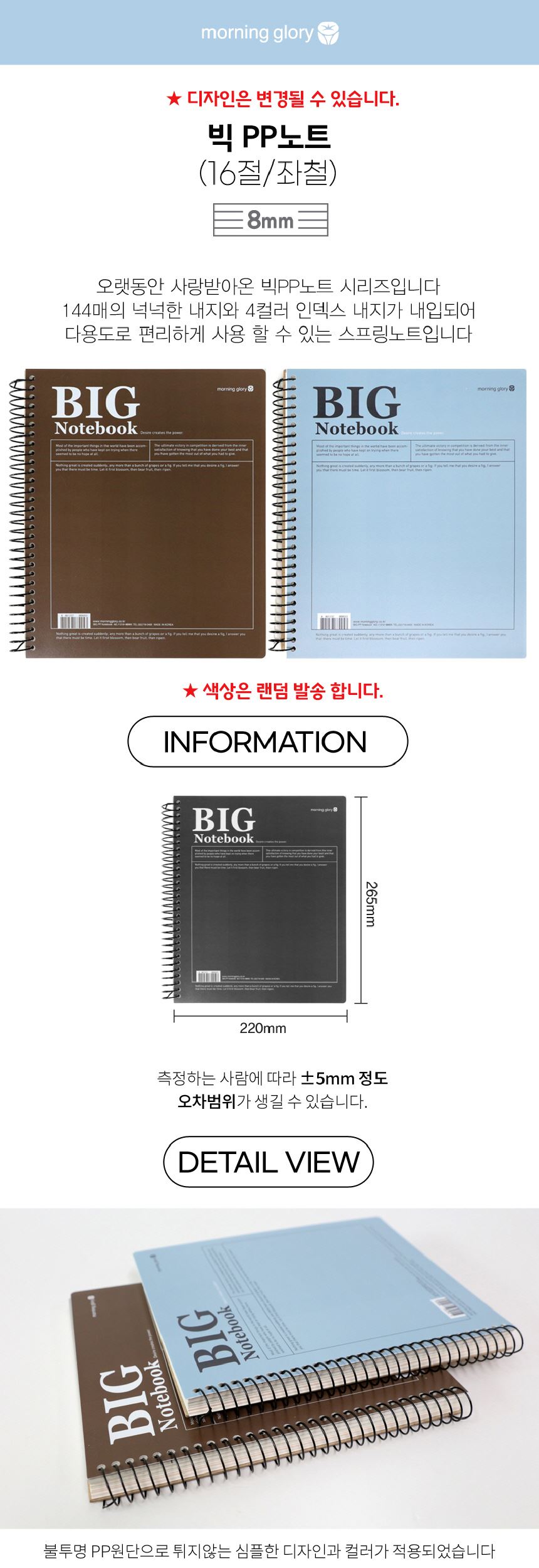 모닝글로리 8mm 인덱스 10000 빅 PP 스프링 노트(16절/좌철) / 설래임 / 디비디비 / 구매하기 / 특가할인