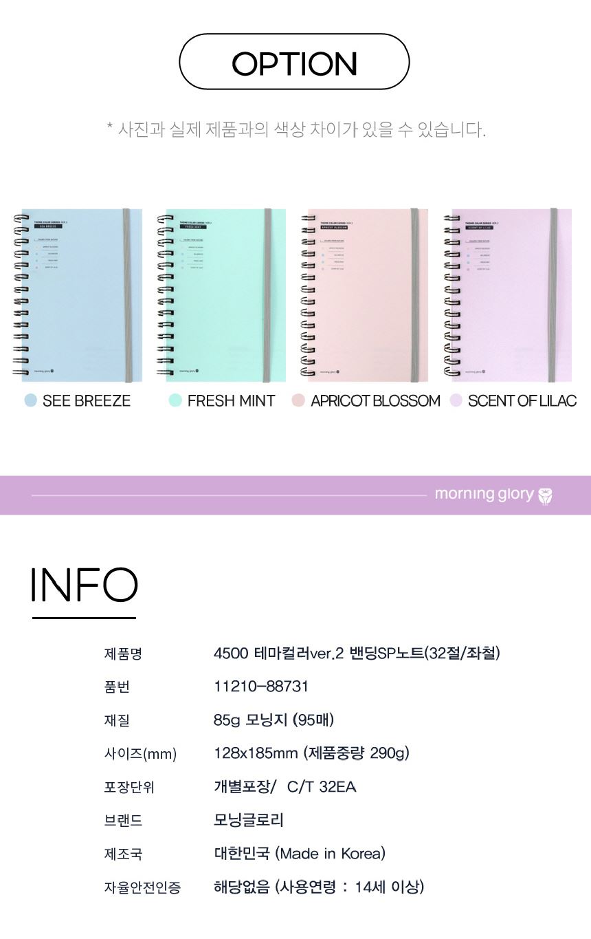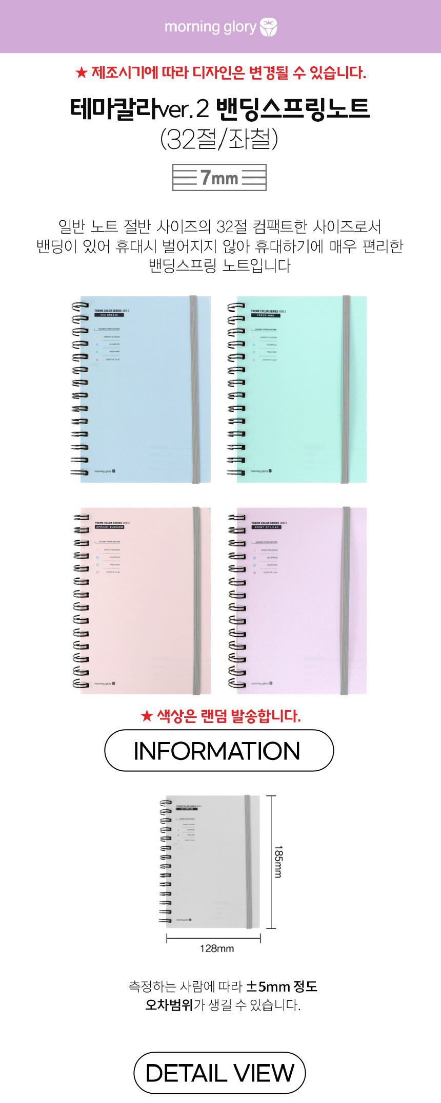 모닝글로리 7mm 테마컬러 밴딩 스프링노트 32절/좌철 / 설래임 / 디비디비 / 구매하기 / 특가할인