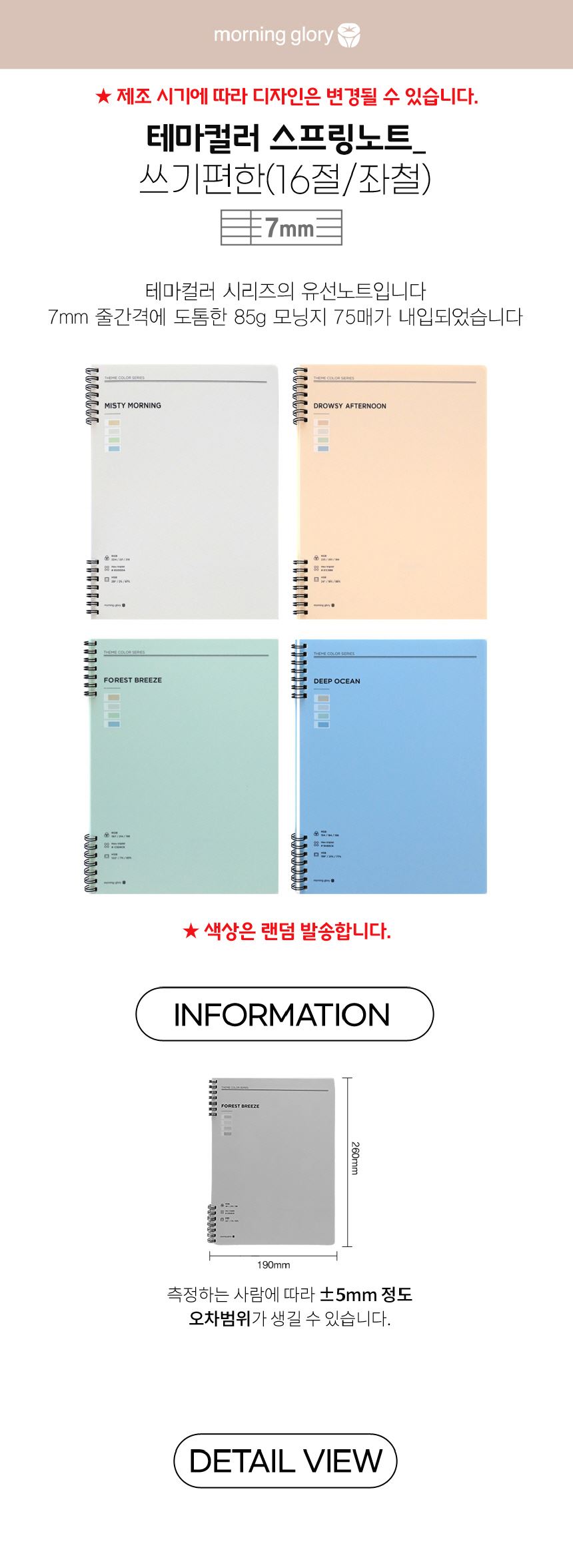 모닝글로리 7mm 테마컬러 스프링노트 쓰기편한 16절 좌철