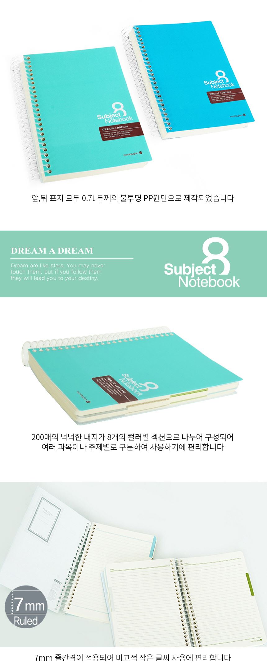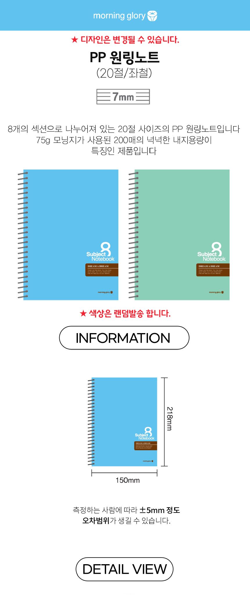 모닝글로리 두꺼운 미니노트 7mm 8분류 인덱스 PP 원링노트 20절 좌철
