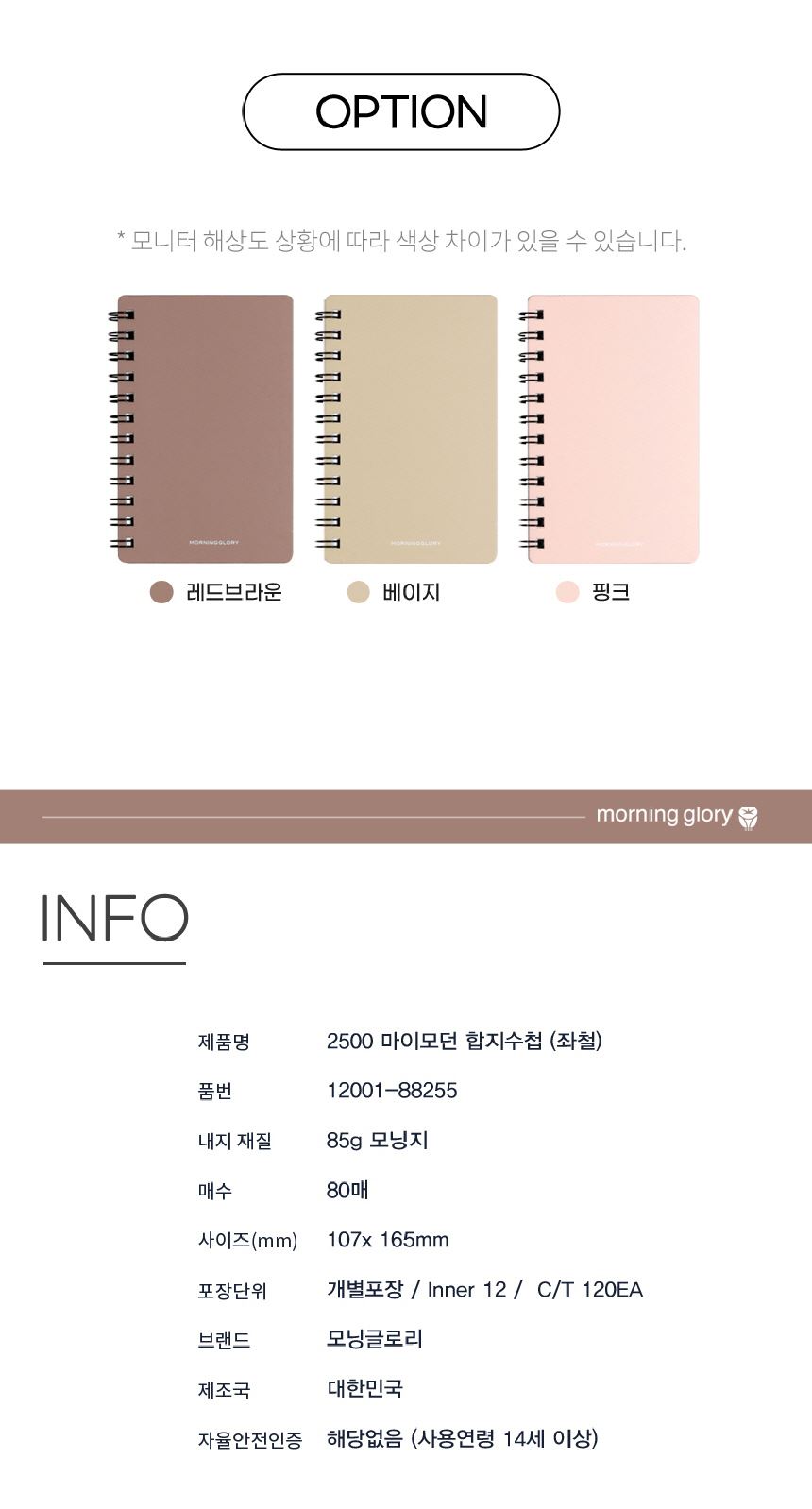 • 모닝글로리 7mm 미니수첩 2500 마이모던 합지수첩 좌철