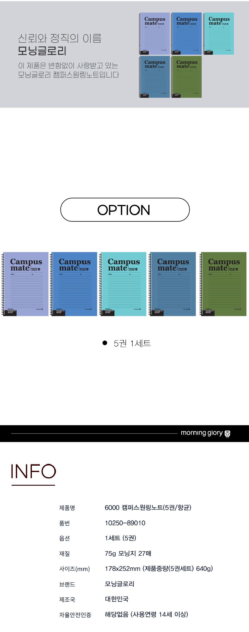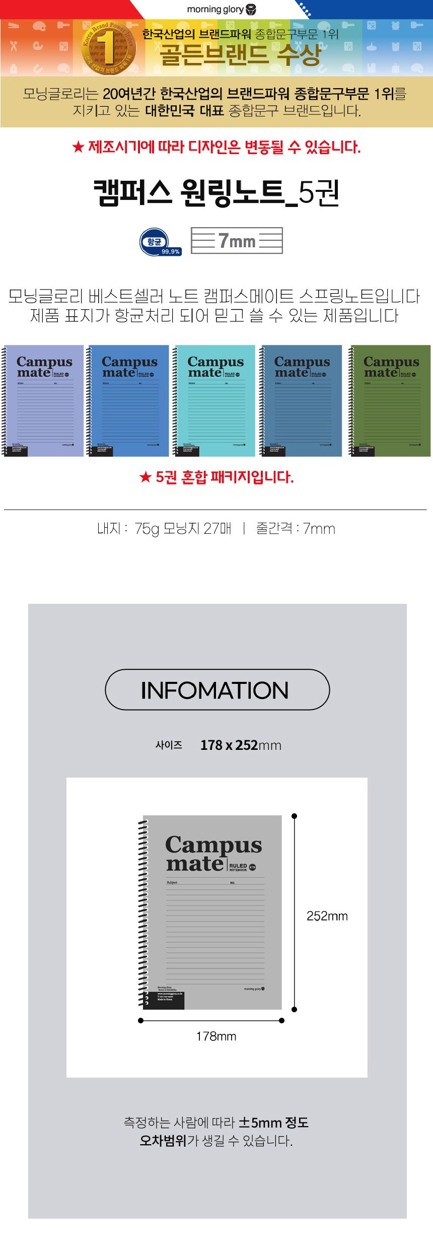• 모닝글로리 7mm 노트 캠퍼스 원링노트 5권세트