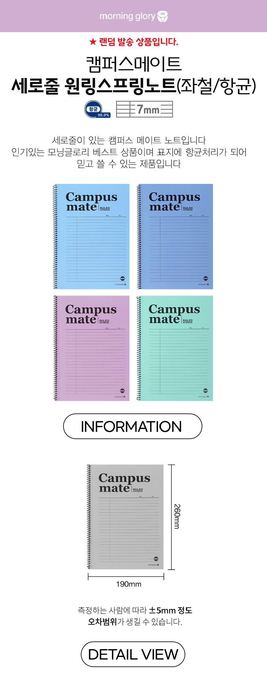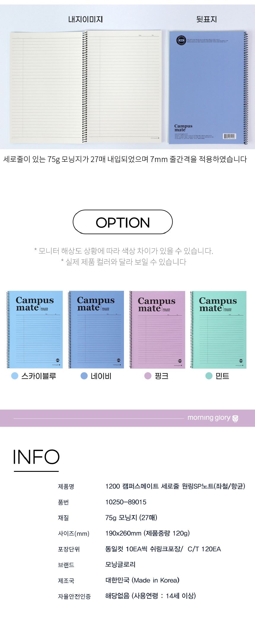 • 모닝글로리 7mm 캠퍼스메이트 세로줄 원링 스프링노트 16절 좌철 10권