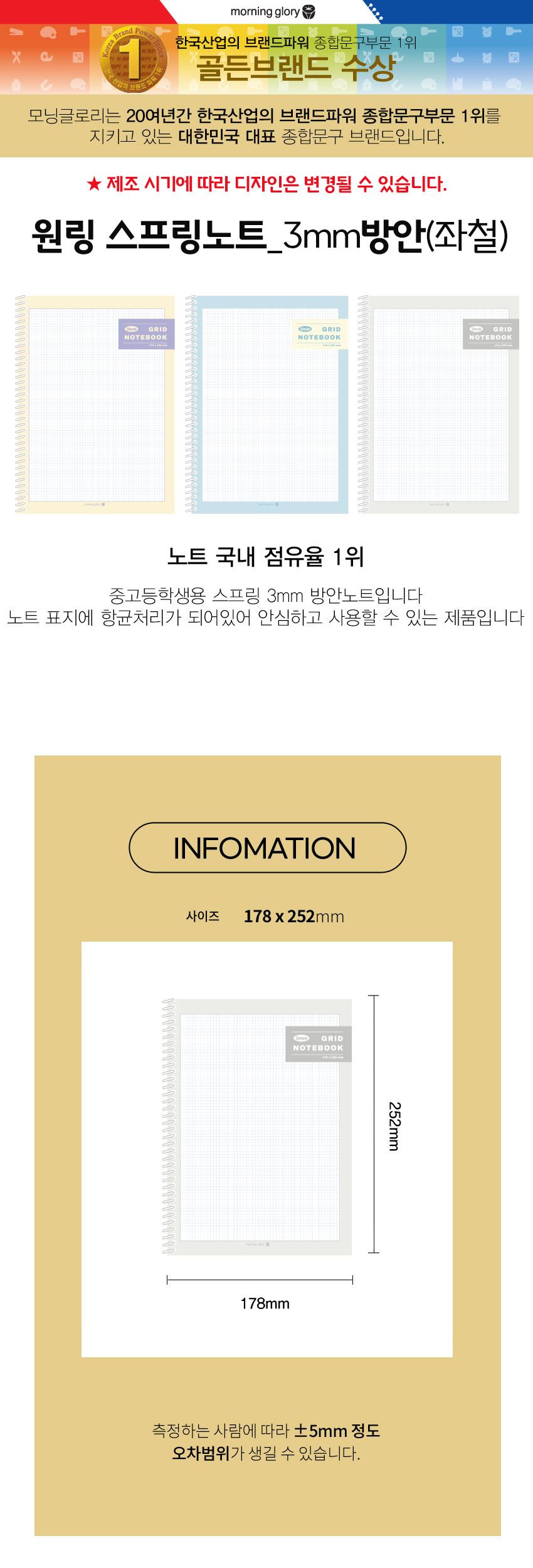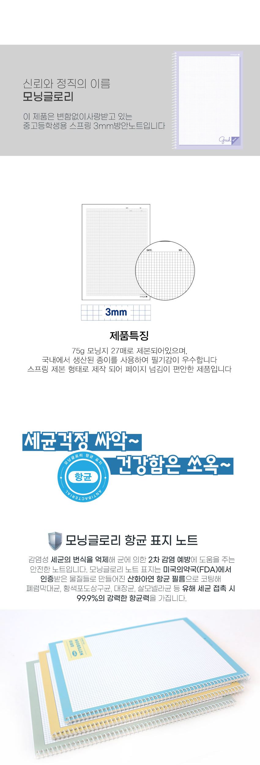 모닝글로리 원링 스프링노트 3mm 방안 좌철 1팩(5권)