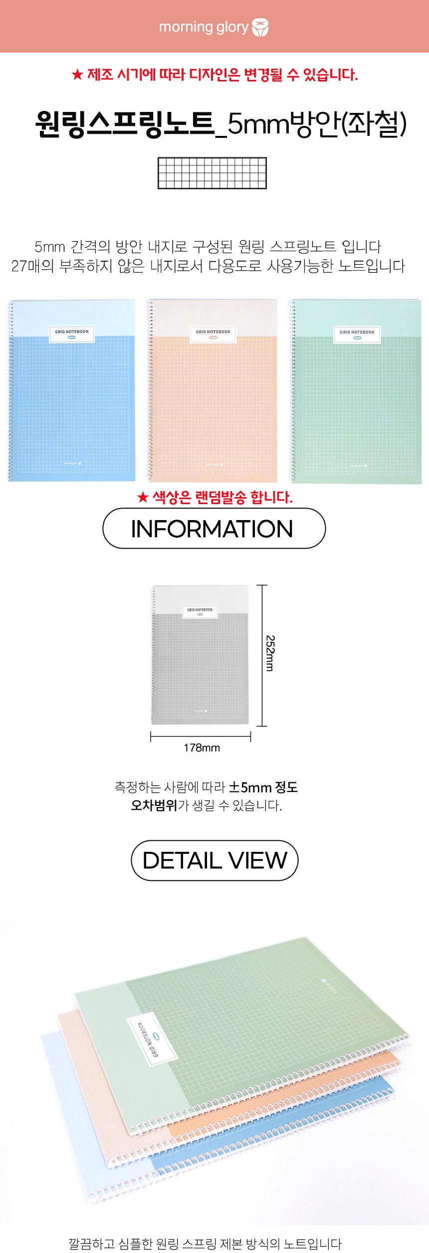 모닝글로리 원링 스프링노트 5mm 방안 좌철 1팩(5권) / 설래임 / 디비디비 / 구매하기 / 특가할인