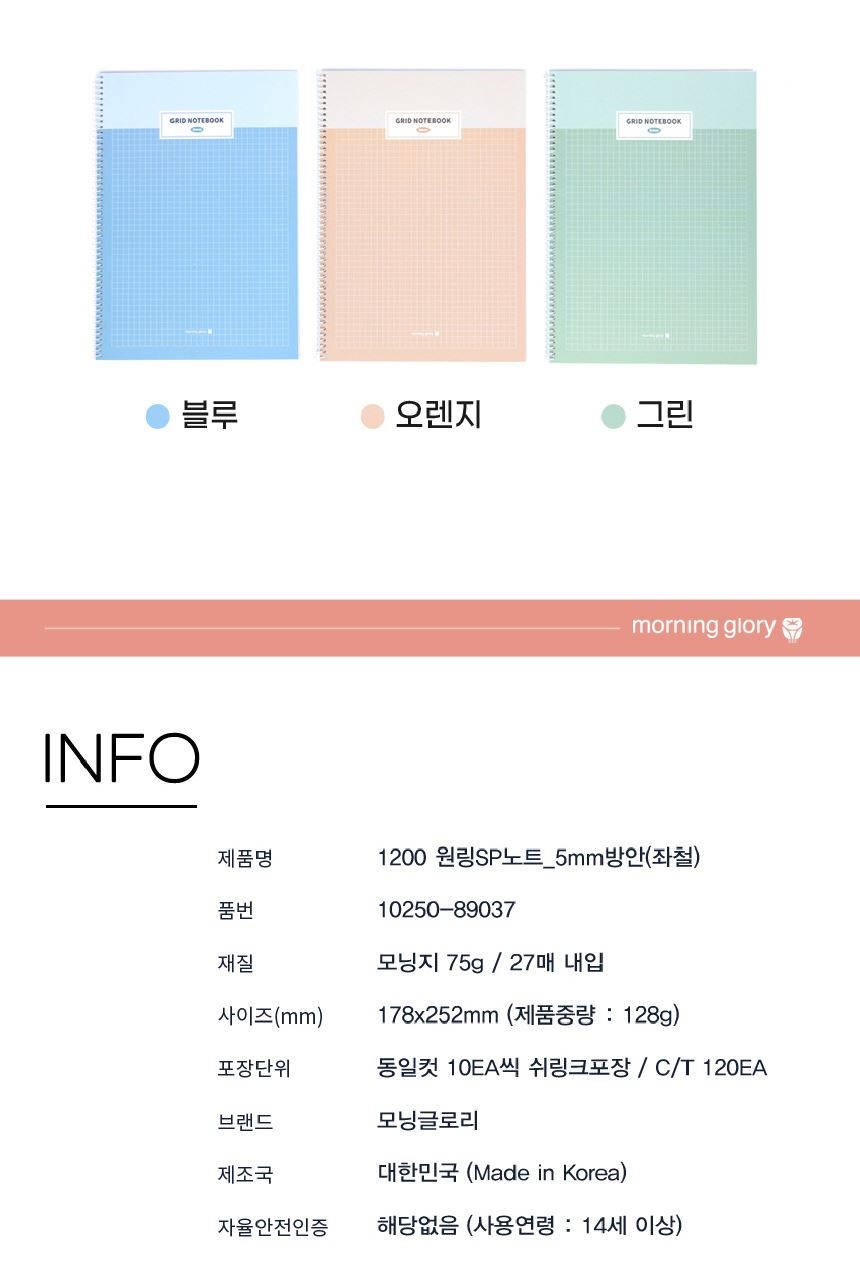 • 모닝글로리 원링 스프링노트 5mm 방안 좌철 1팩(5권)