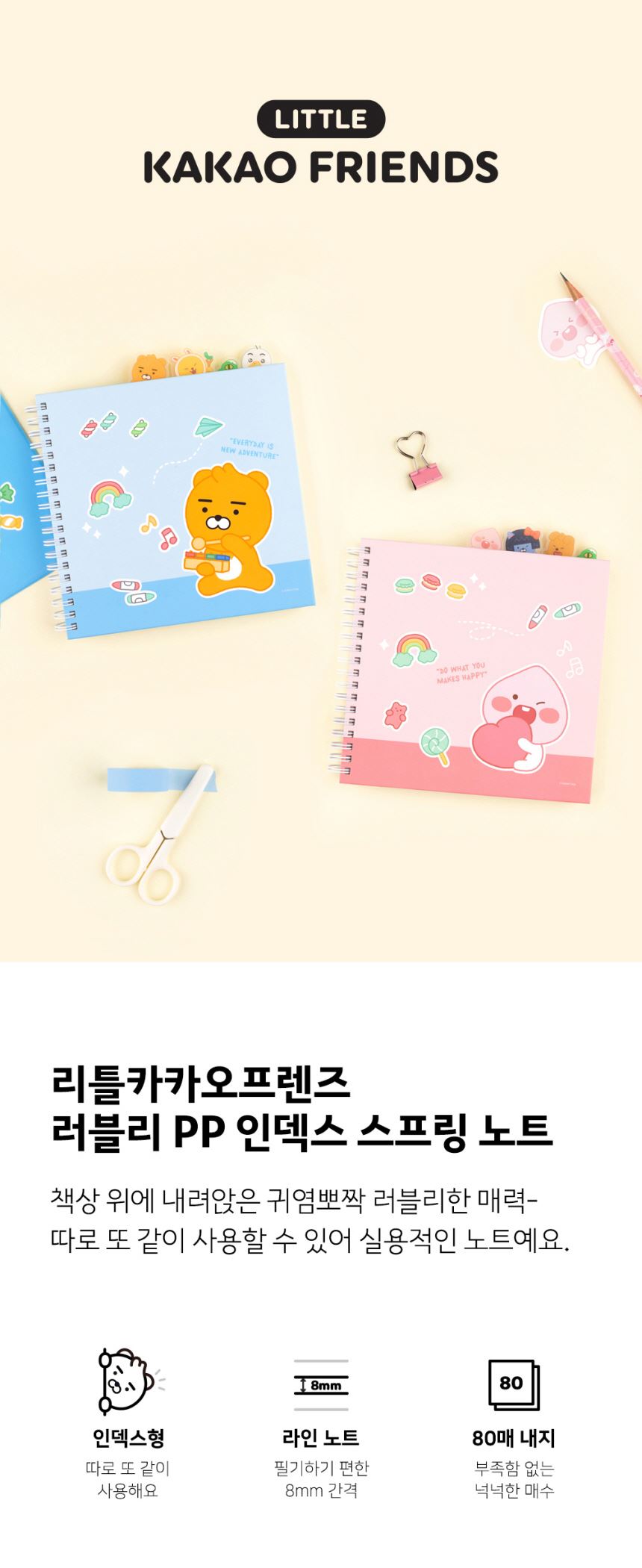 카카오리틀프렌즈 러블리 PP 인덱스 스프링 노트