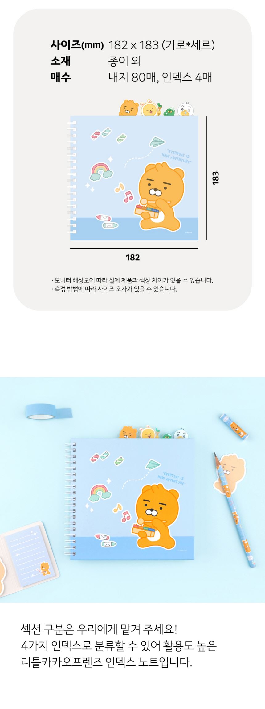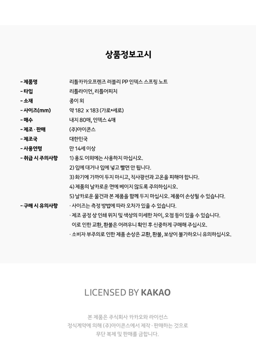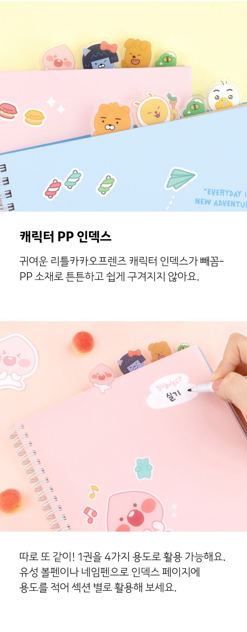 카카오리틀프렌즈 러블리 PP 인덱스 스프링 노트 / 설래임 / 디비디비 / 구매하기 / 특가할인