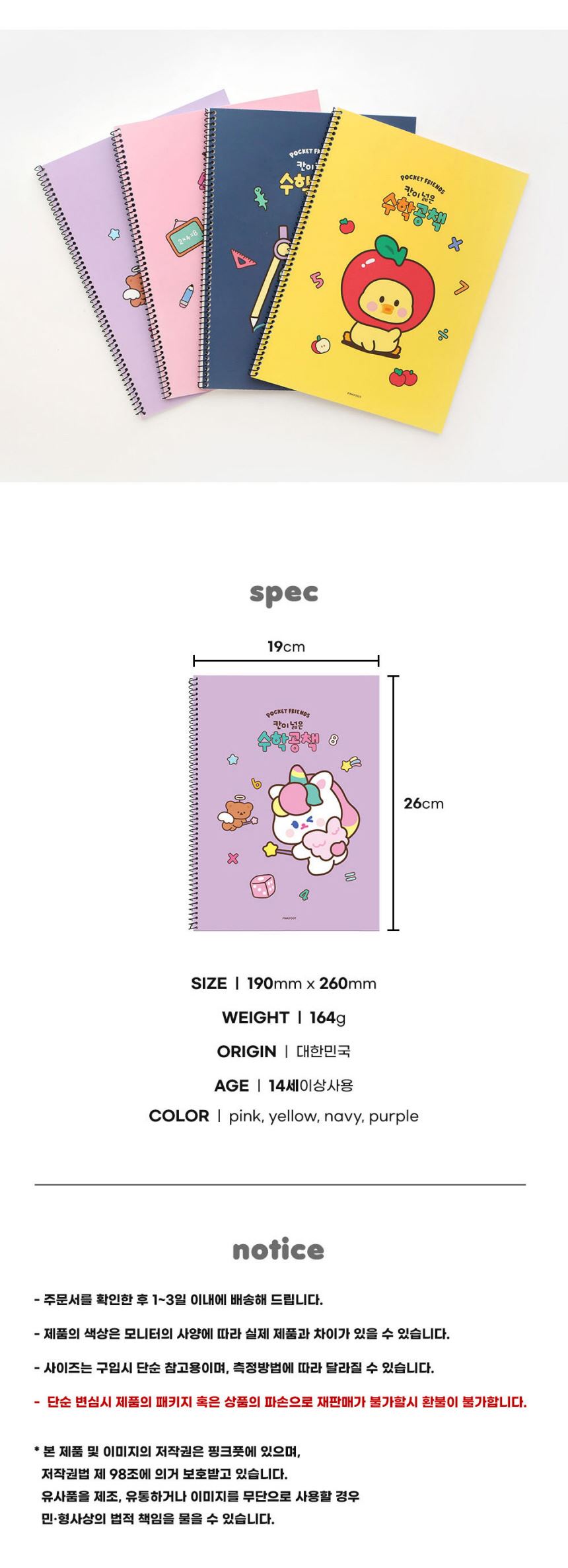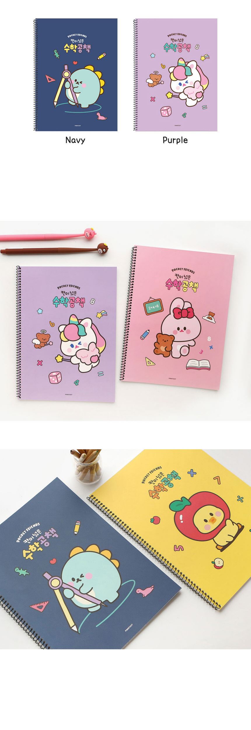 • 핑크풋 초등학생 10mm 스프링 칸이 넓은 수학공책 혼합1팩(8권)