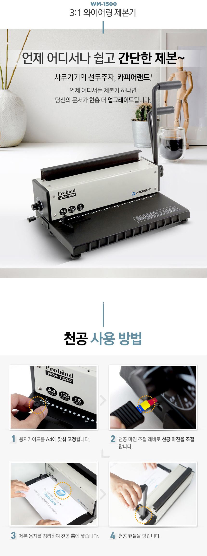 카피어랜드 3:1 와이어링 A4 수동 제본기 probind WM-1500 / 설래임 / 디비디비 / 구매하기 / 특가할인