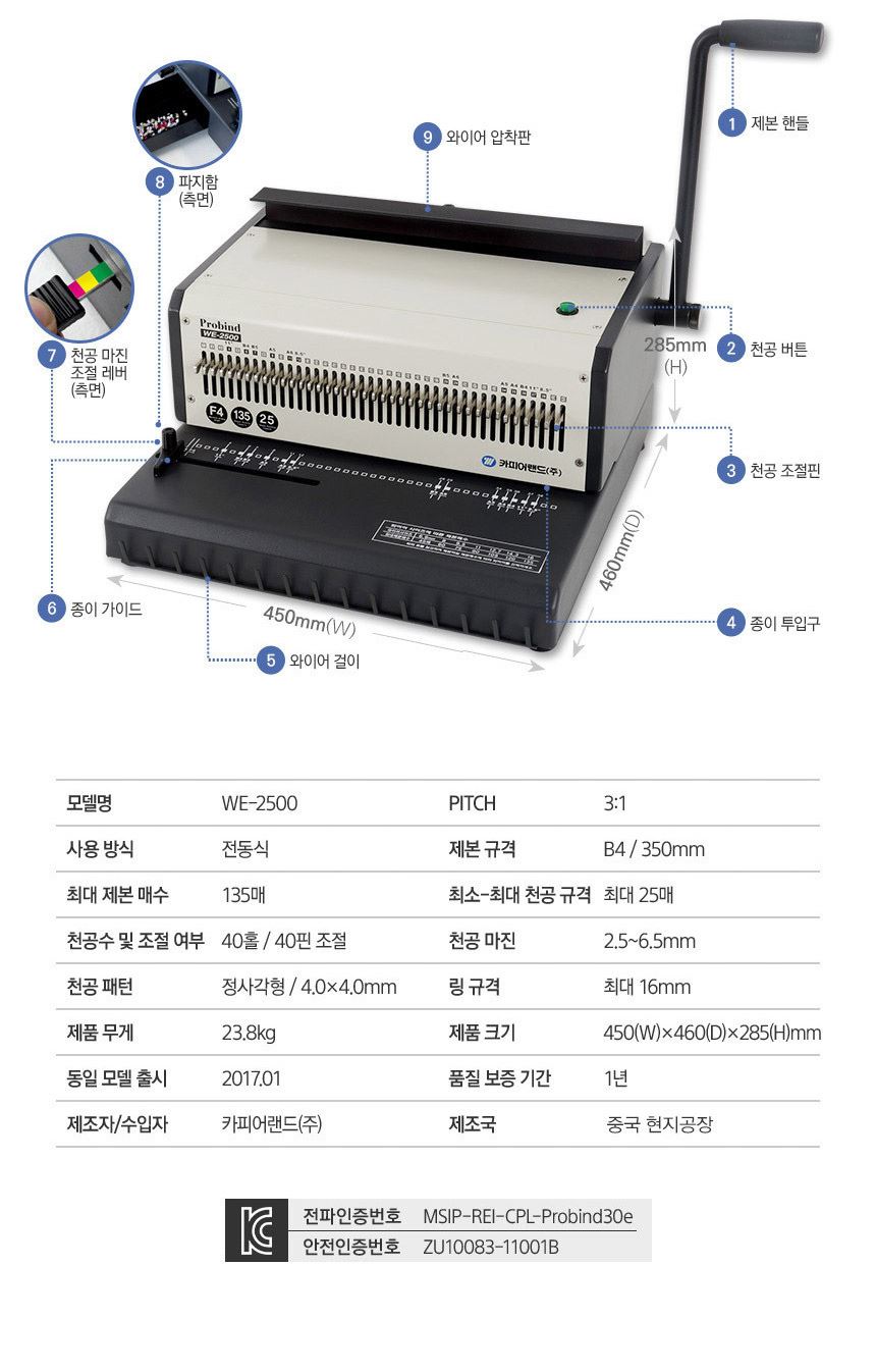 카피어랜드 3:1 와이어링 B4 파워 전동 제본기 probind WE-2500