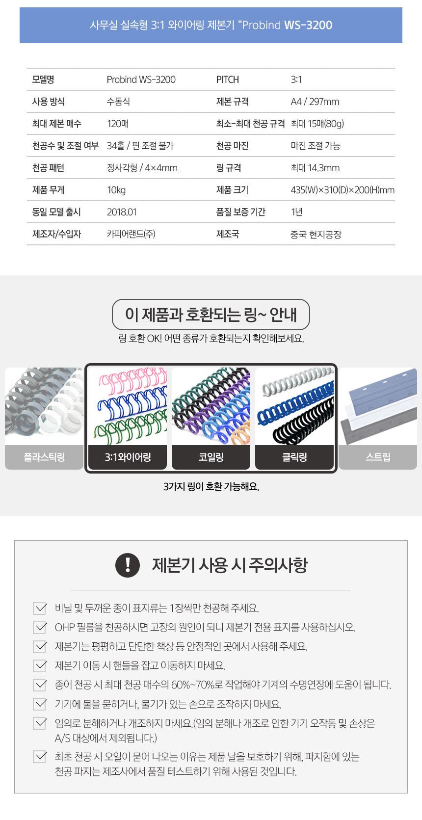 카피어랜드 3:1 와이어링 A4 실속형 수동 제본기 probind WS-3200 / 설래임 / 디비디비 / 구매하기 / 특가할인