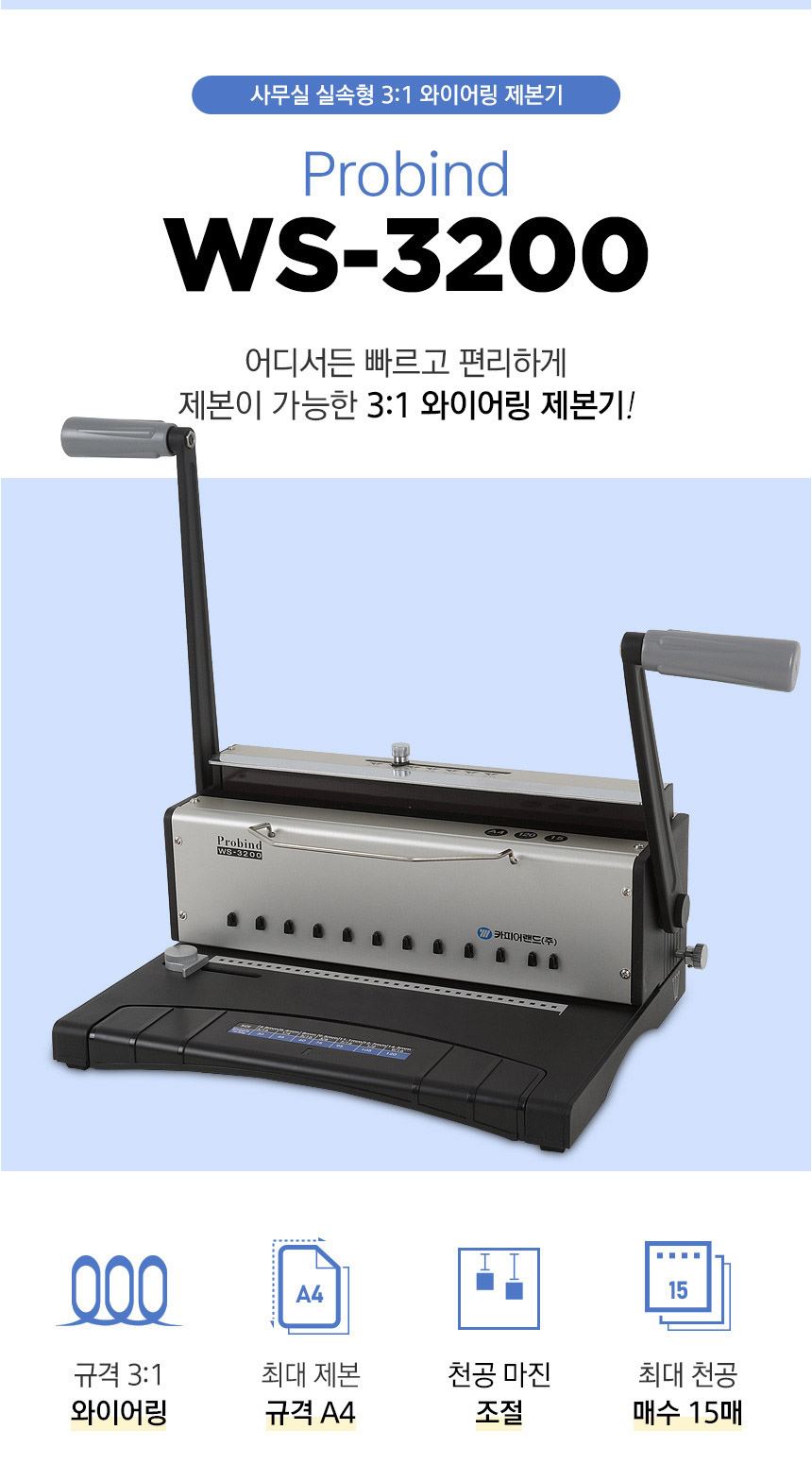 • 카피어랜드 3:1 와이어링 A4 실속형 수동 제본기 probind WS-3200