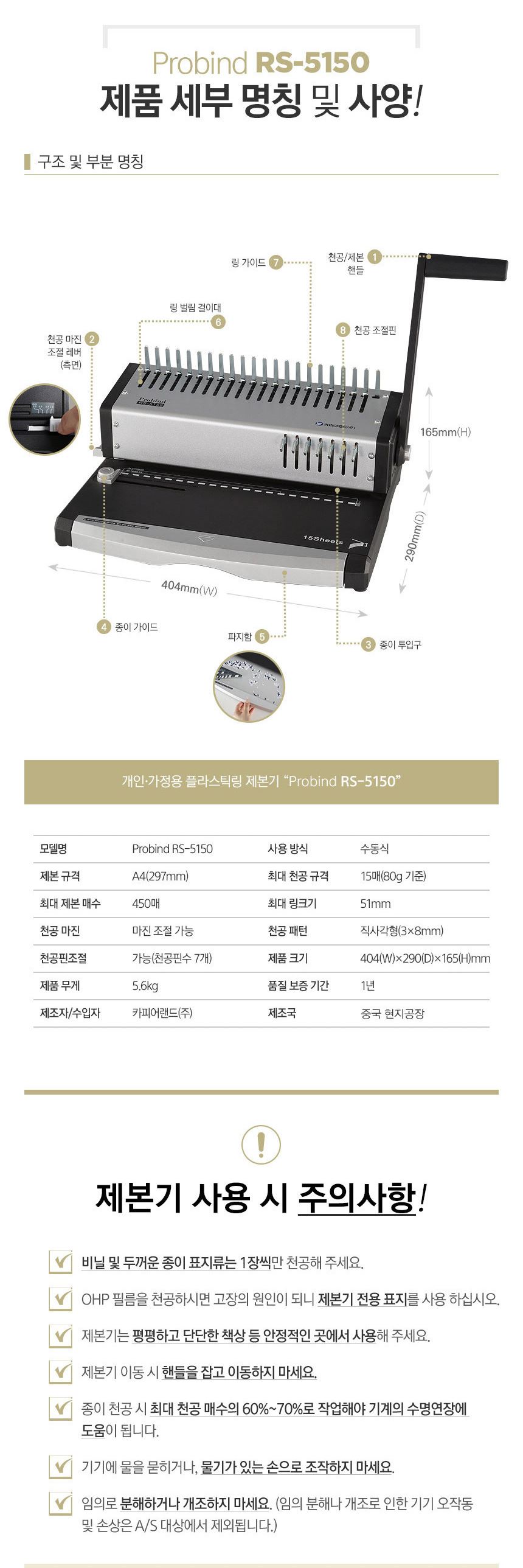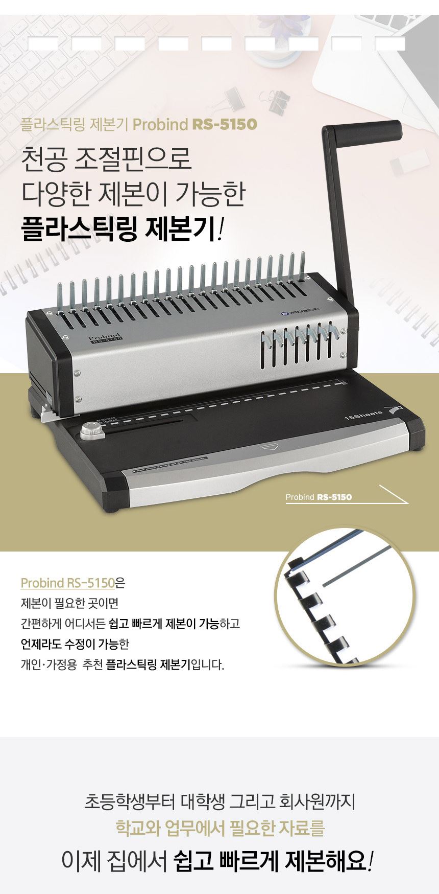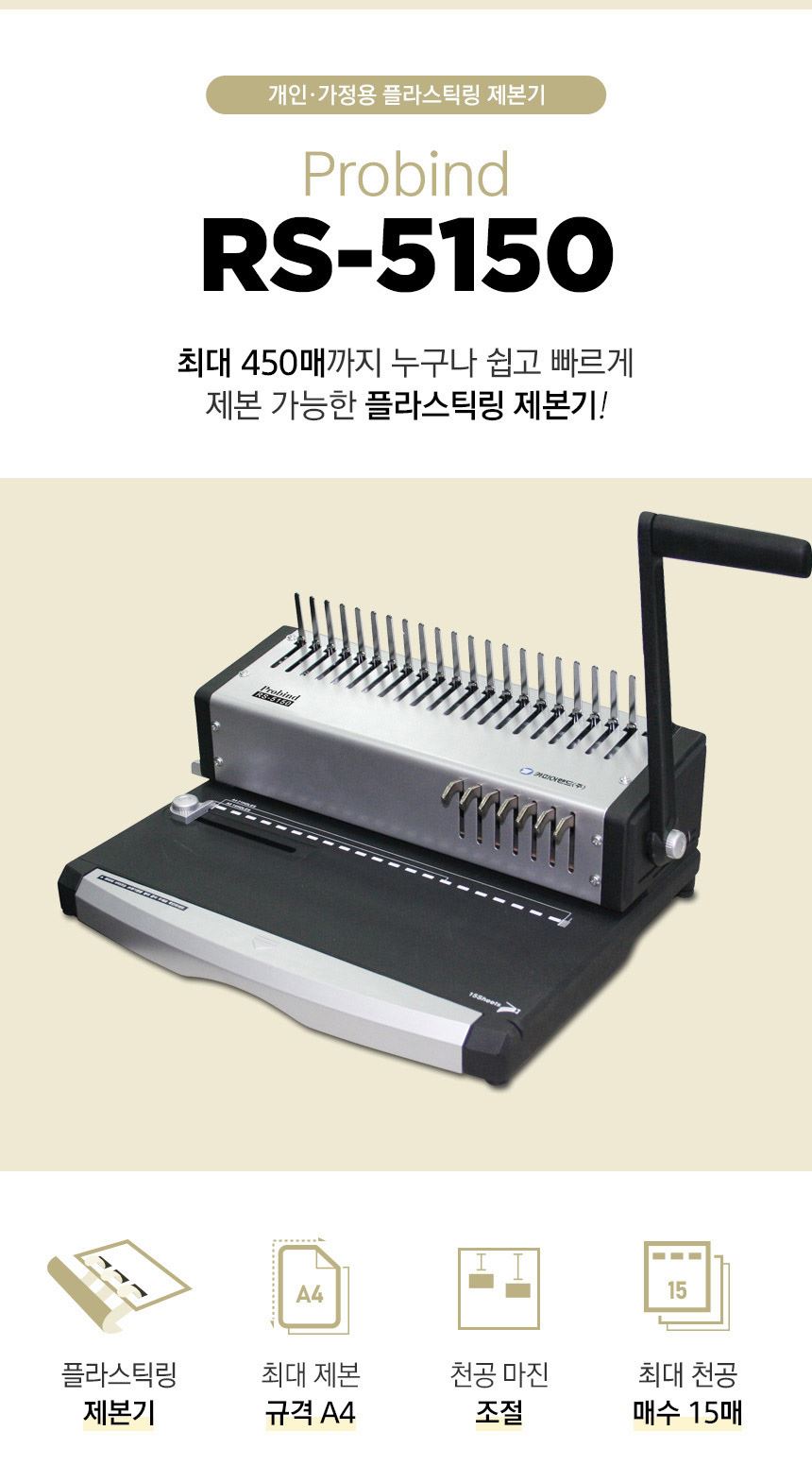 카피어랜드 플라스틱링 A4 수동 제본기 probind RS-5150 / 설래임 / 디비디비 / 구매하기 / 특가할인