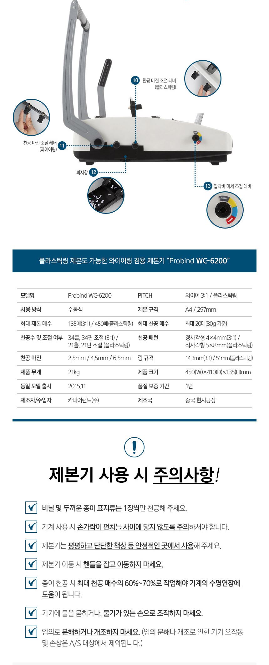 카피어랜드 3:1 와이어링 플라스틱링 겸용 A4 제본기 probind WC-6200 / 설래임 / 디비디비 / 구매하기 / 특가할인