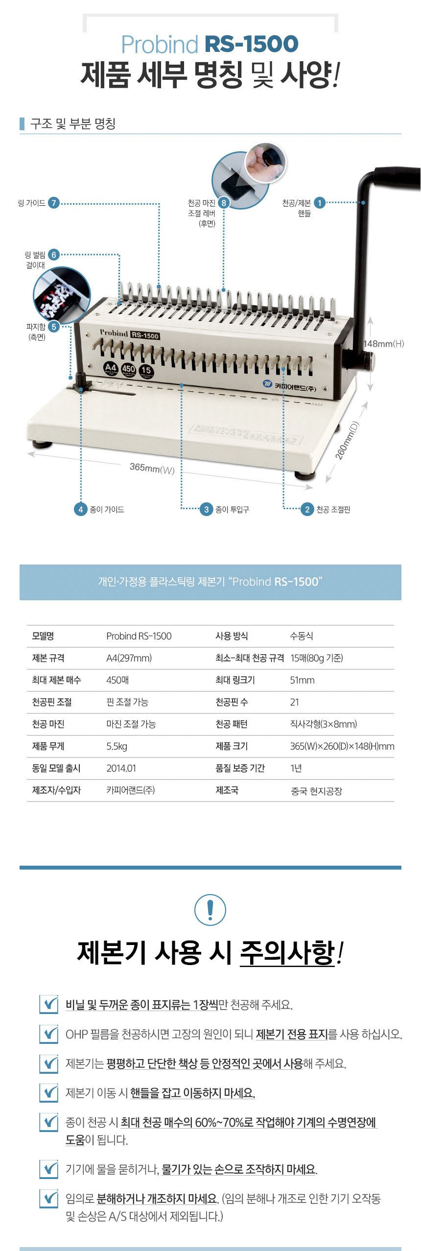 카피어랜드 플라스틱링 A4 수동 제본기 probind RS-1500