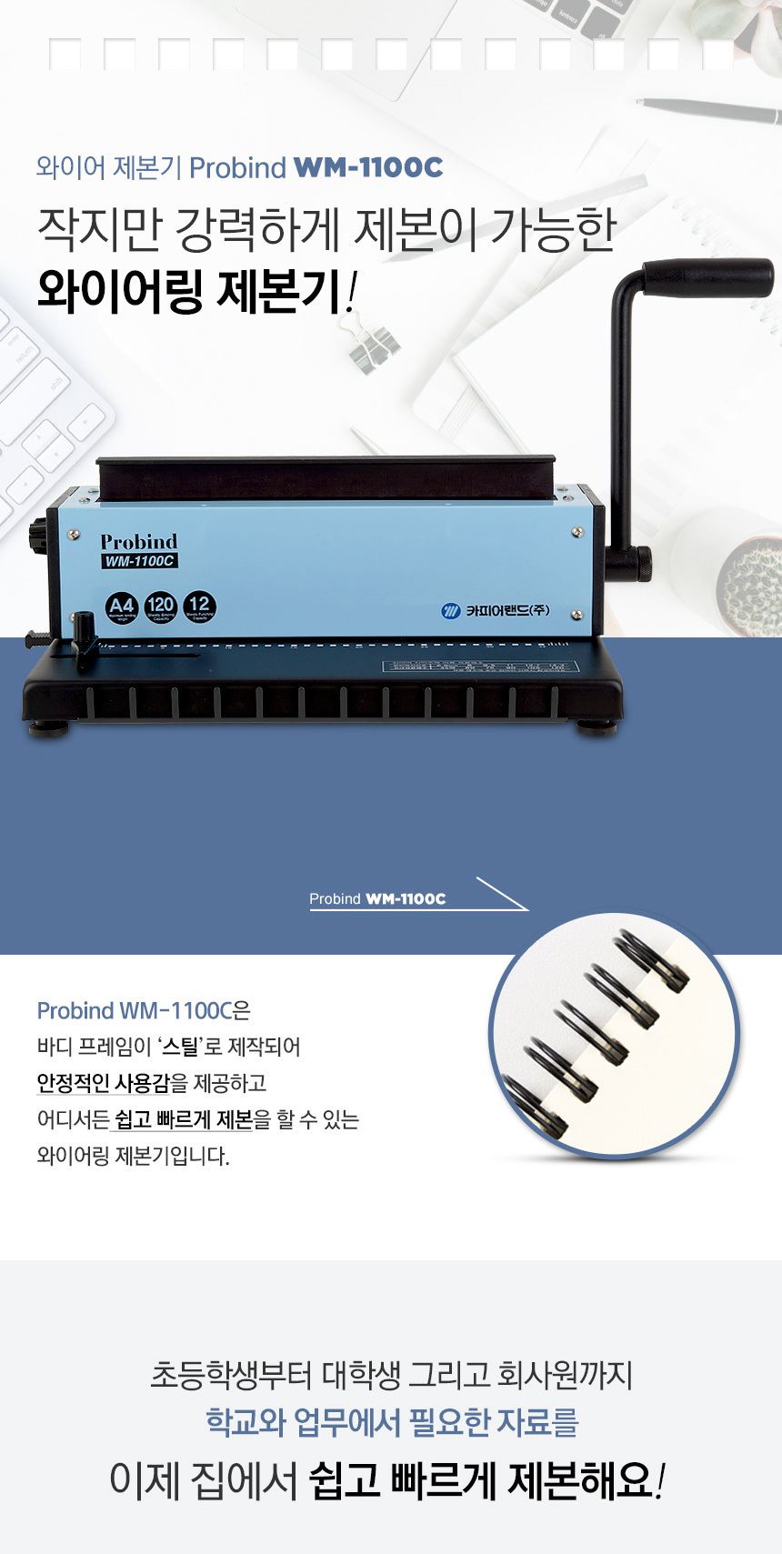 • 카피어랜드 3:1 와이어링 A4 수동 제본기 probind WM-1100C