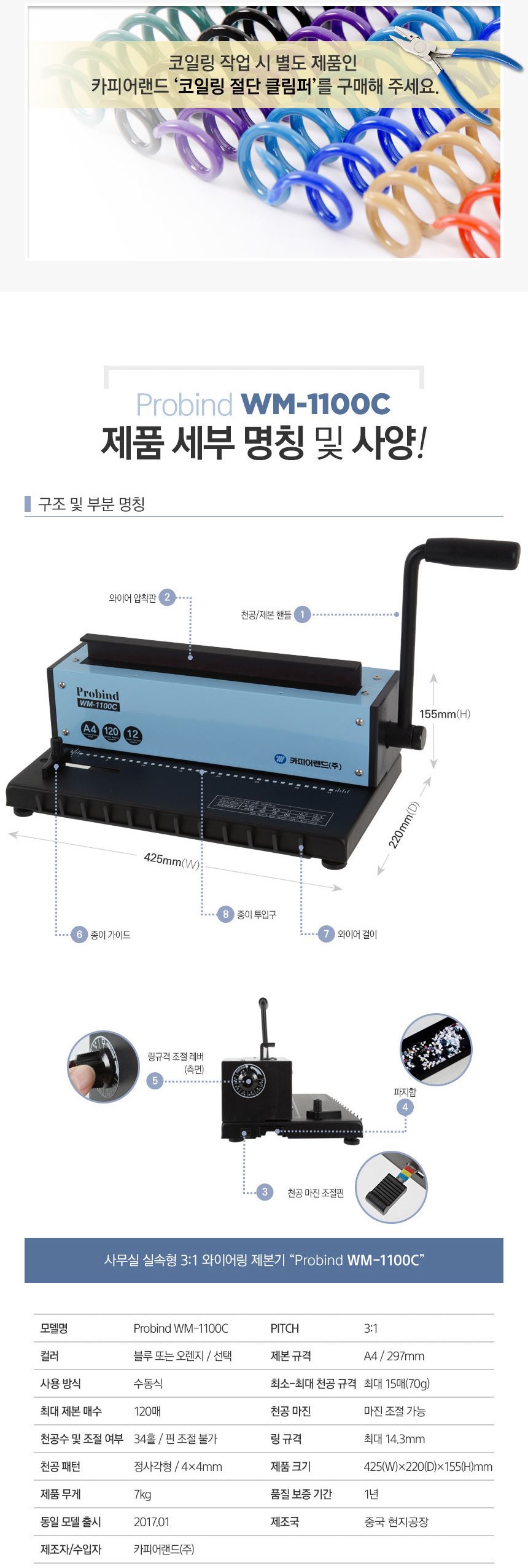 카피어랜드 3:1 와이어링 A4 수동 제본기 probind WM-1100C / 설래임 / 디비디비 / 구매하기 / 특가할인