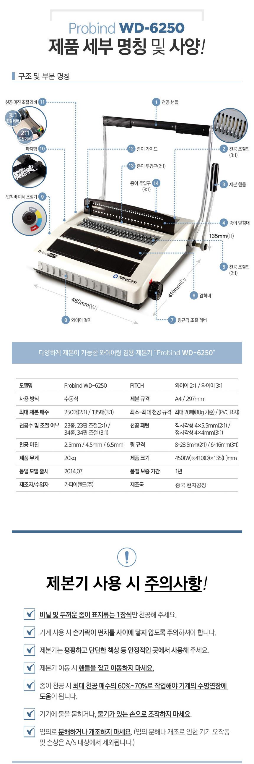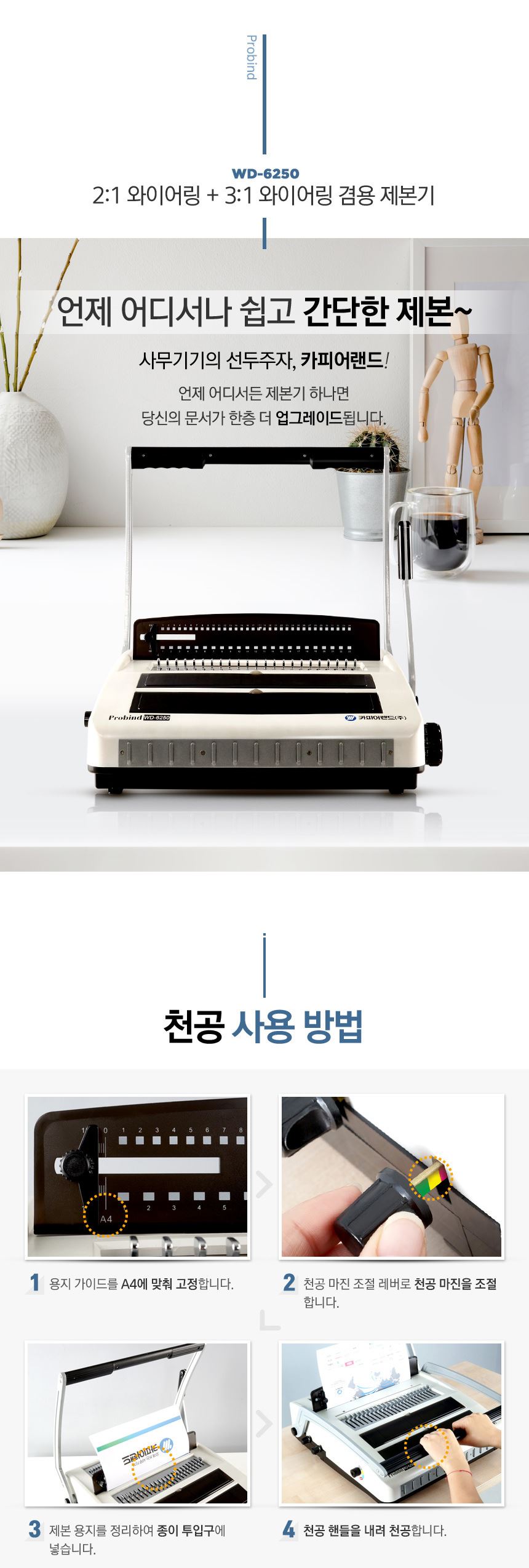 카피어랜드 2:1+3:1 겸용 와이어링 A4 수동 제본기 probind WD-6250 / 설래임 / 디비디비 / 구매하기 / 특가할인