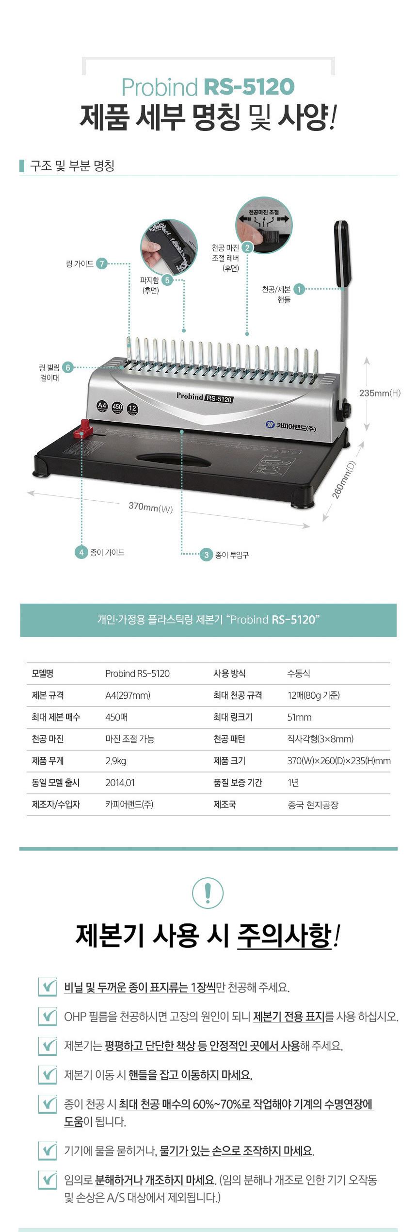 카피어랜드 플라스틱링 A4 수동 제본기 probind RS-5120 / 설래임 / 디비디비 / 구매하기 / 특가할인