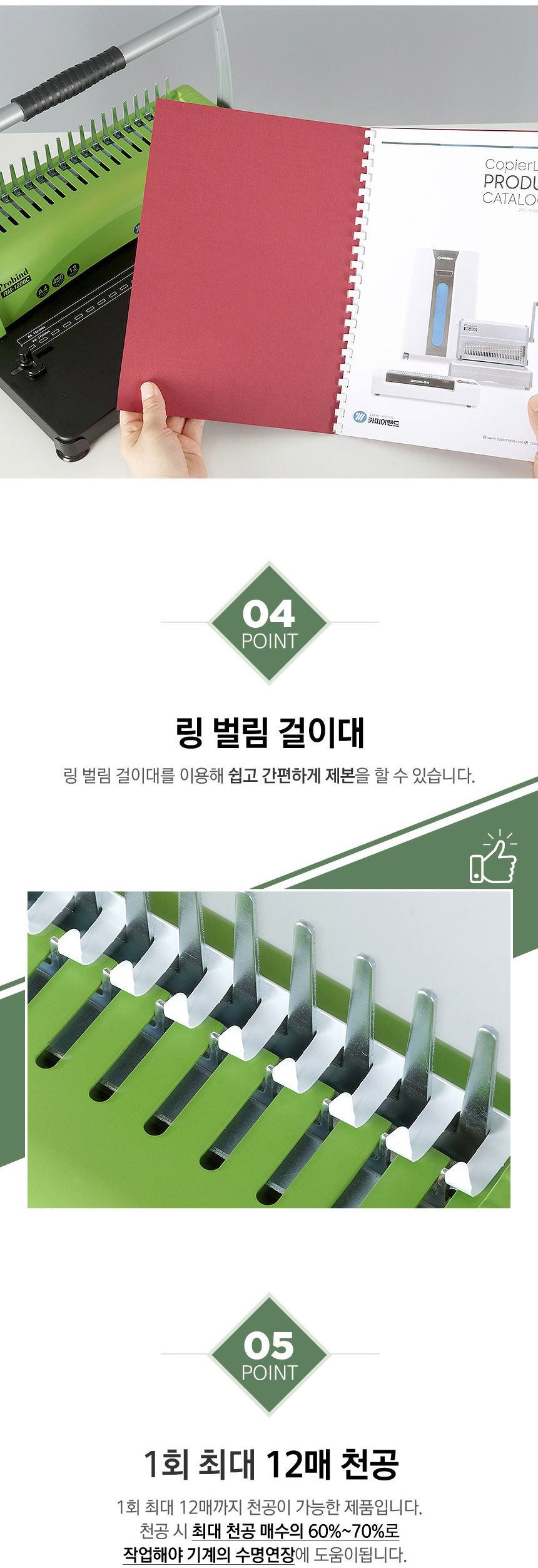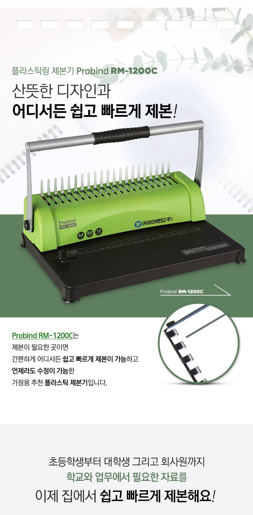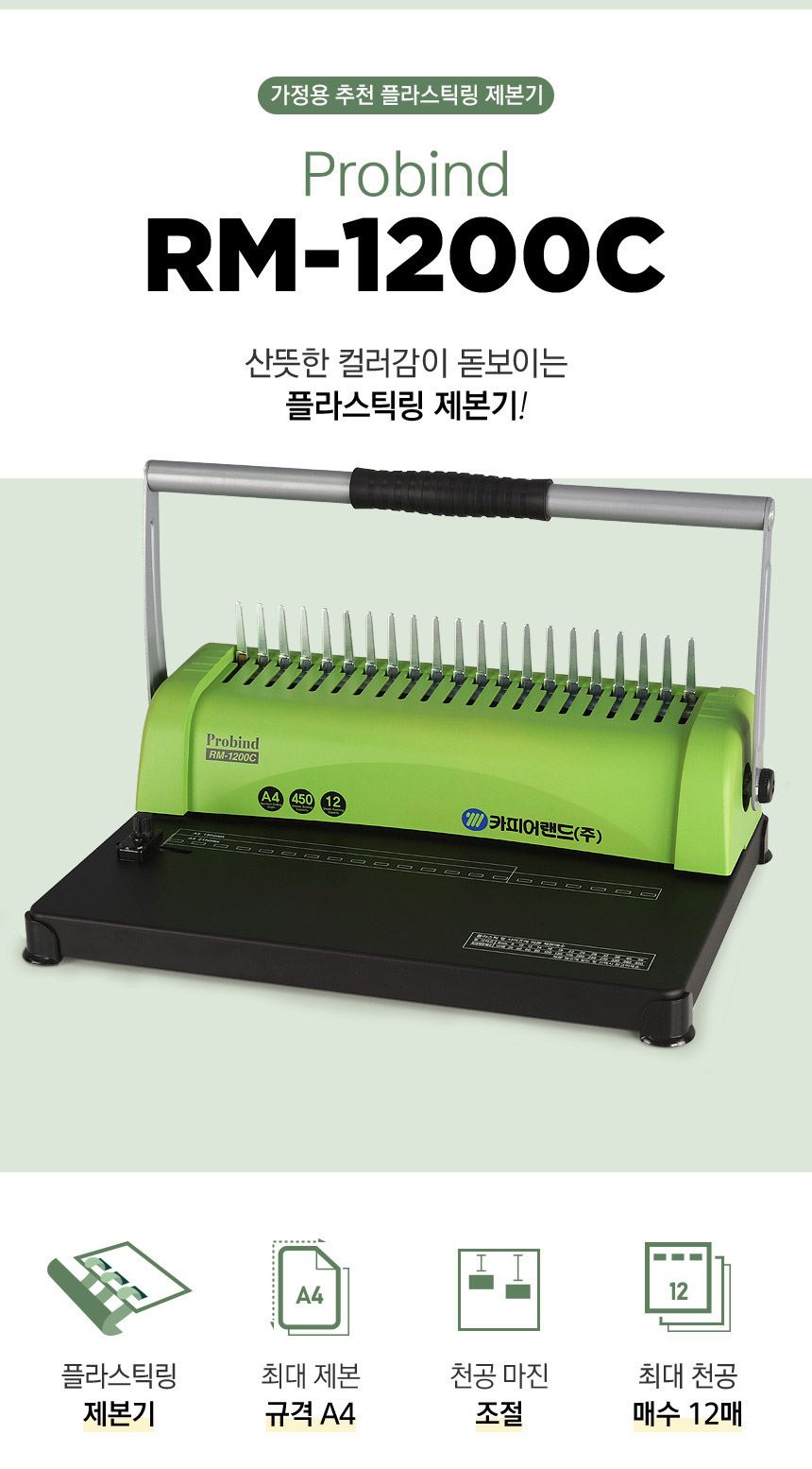 • 카피어랜드 플라스틱링 A4 수동 제본기 Probind RM-1200C