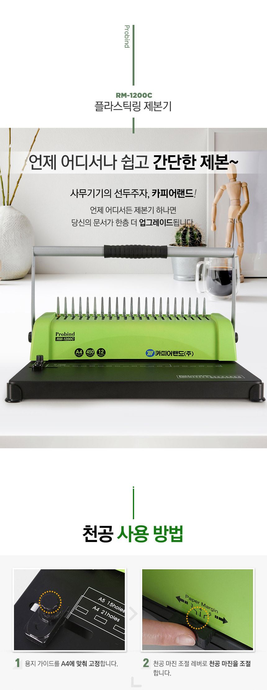 카피어랜드 플라스틱링 A4 수동 제본기 Probind RM-1200C / 설래임 / 디비디비 / 구매하기 / 특가할인