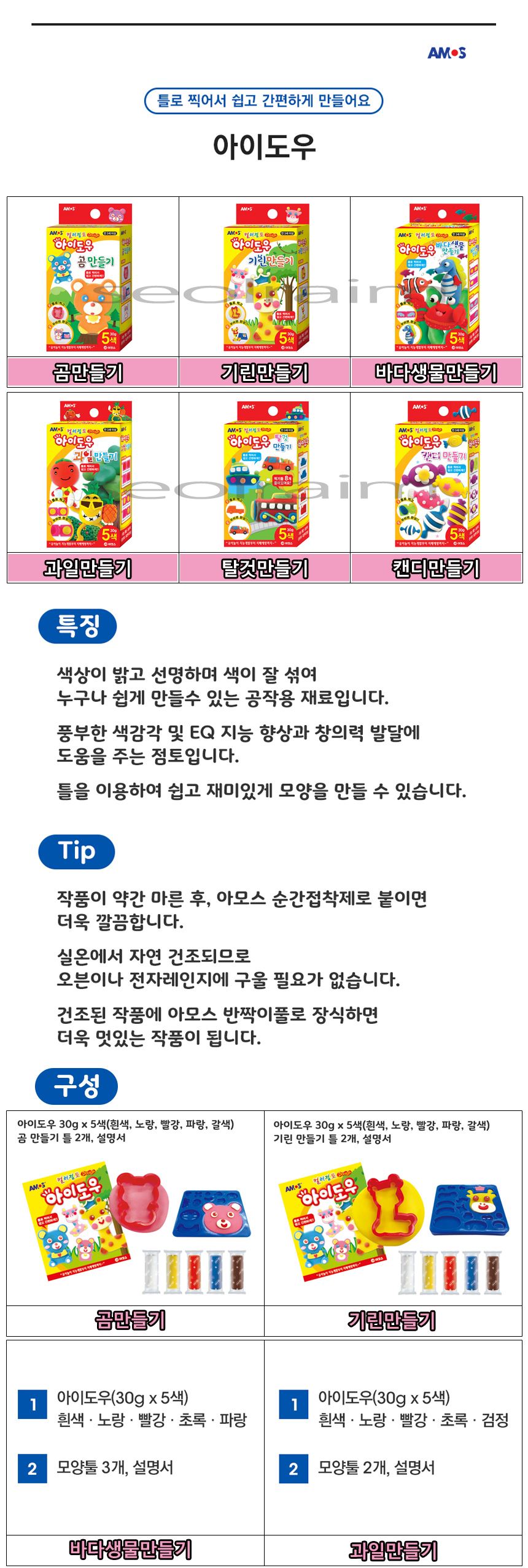 아모스 컬러점토 만들기 아이도우 만들기 6종 / 설래임 / 디비디비 / 구매하기 / 특가할인