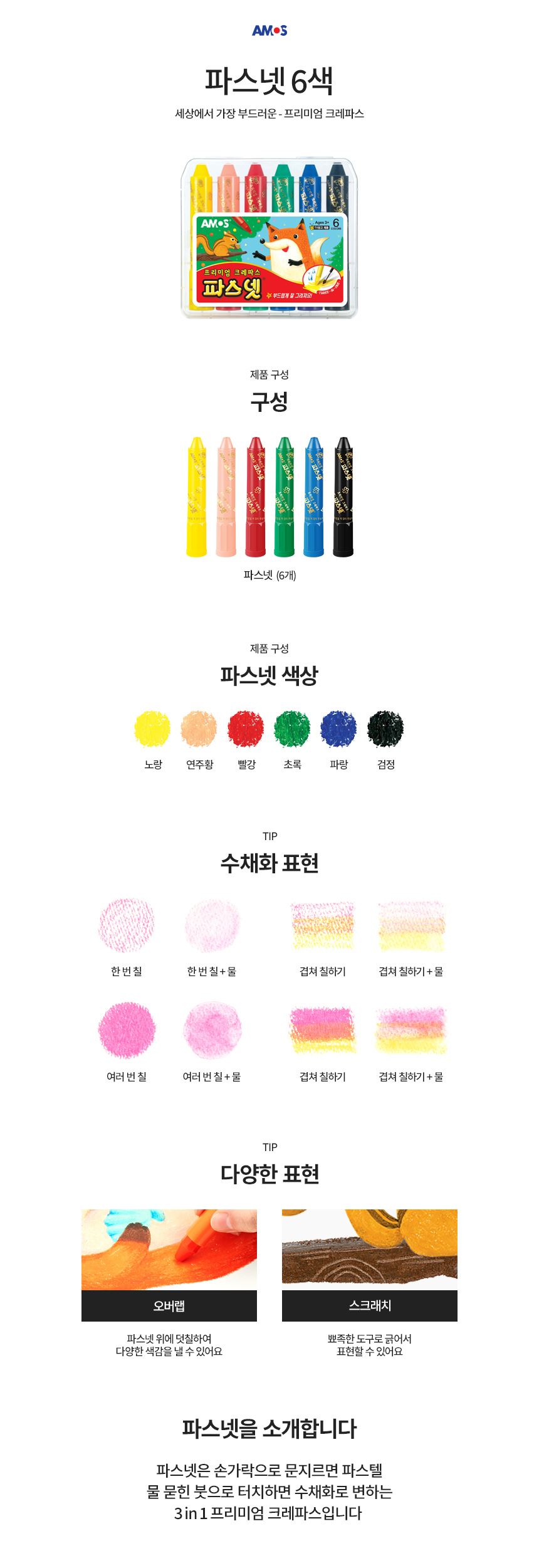 아모스 파스넷 크레파스 6색 / 설래임 / 디비디비 / 구매하기 / 특가할인