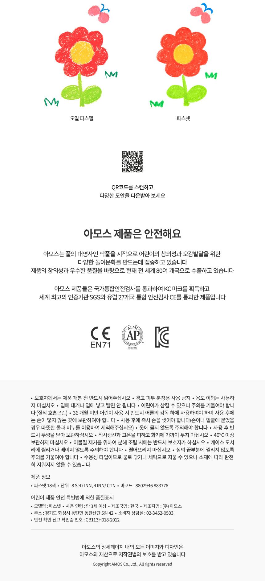 아모스 파스넷 크레파스 18색 / 설래임 / 디비디비 / 구매하기 / 특가할인