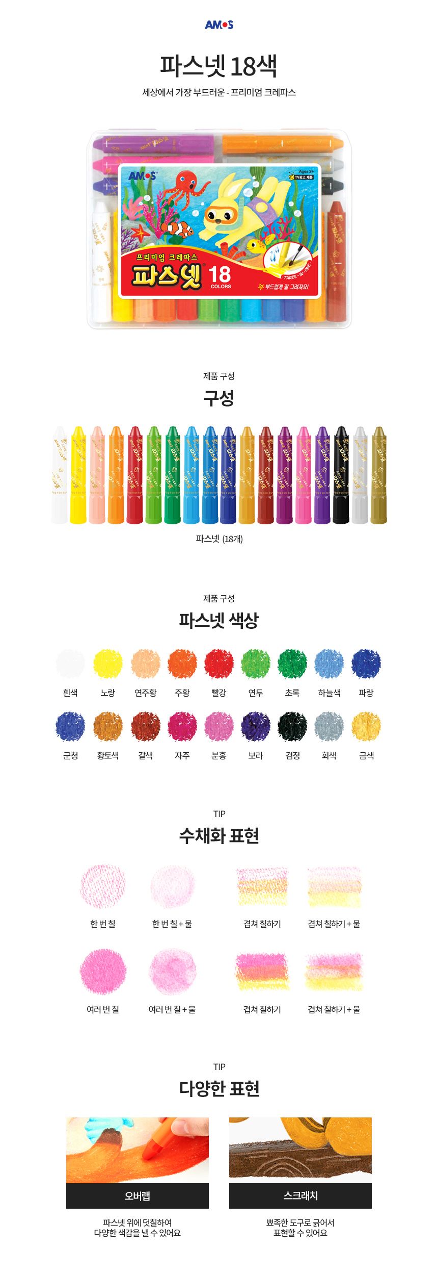 • 아모스 파스넷 크레파스 18색