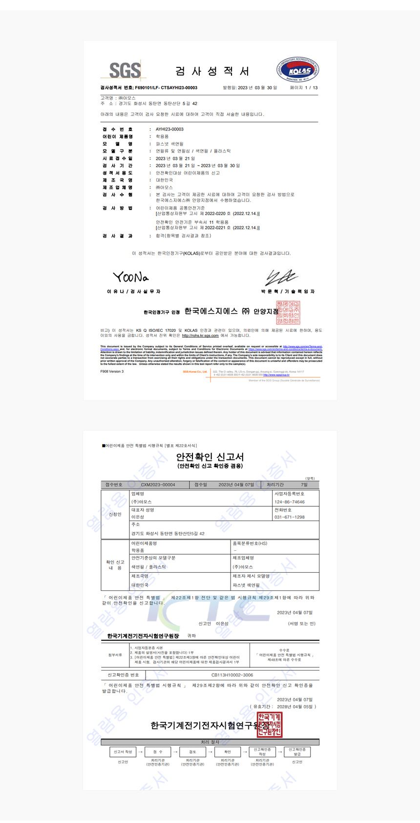 인증 및 허가 사항 상세페이지 참조